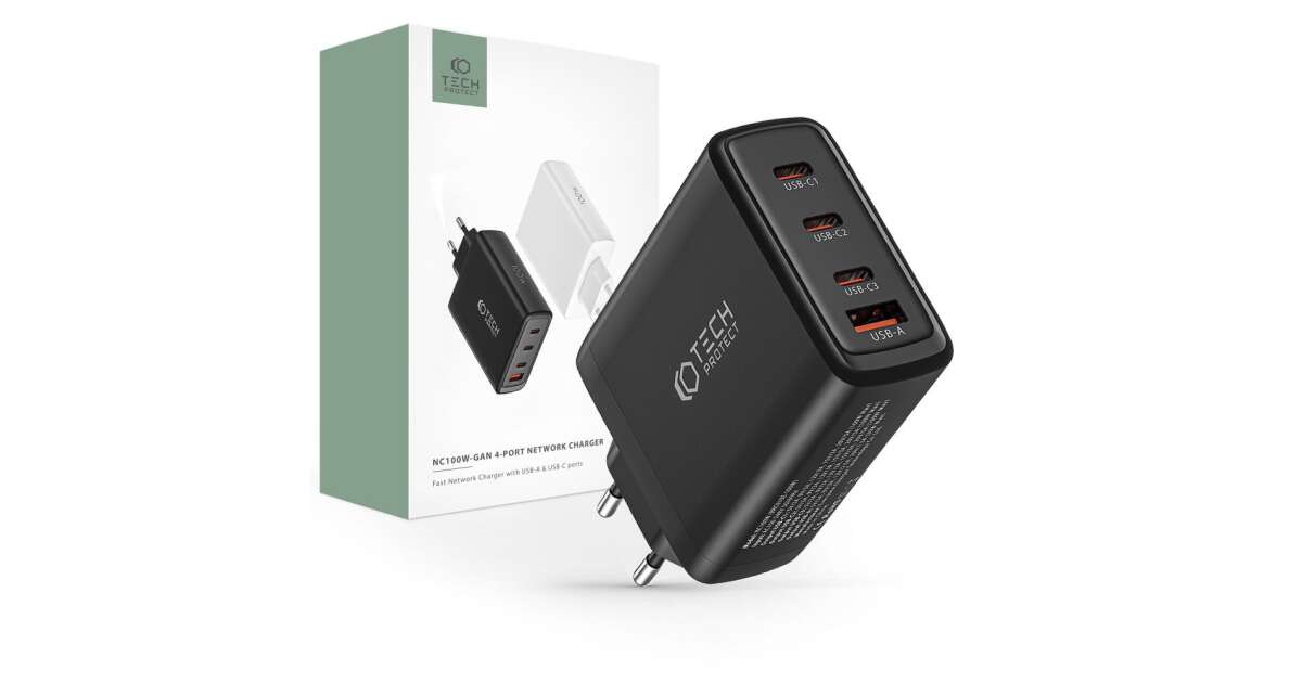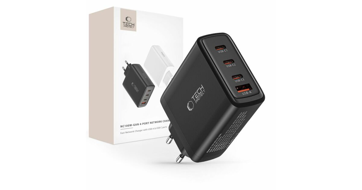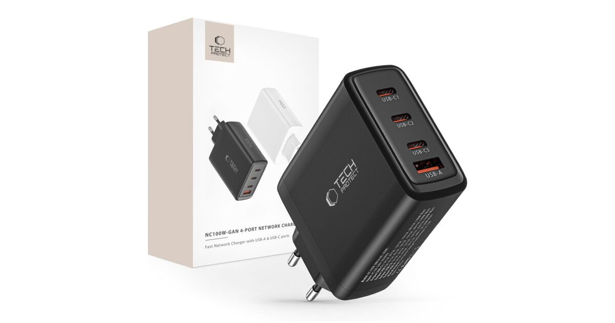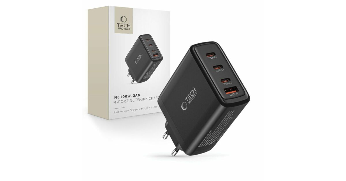 Tech-Protect 4-Port GaN Ladegerät: 100W Schnellladeleistung ⚡