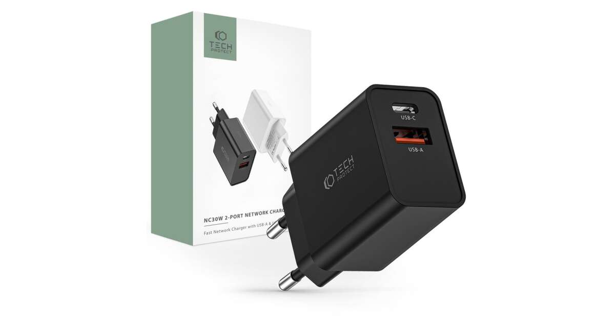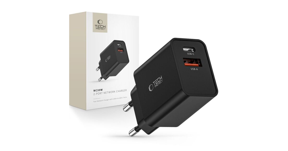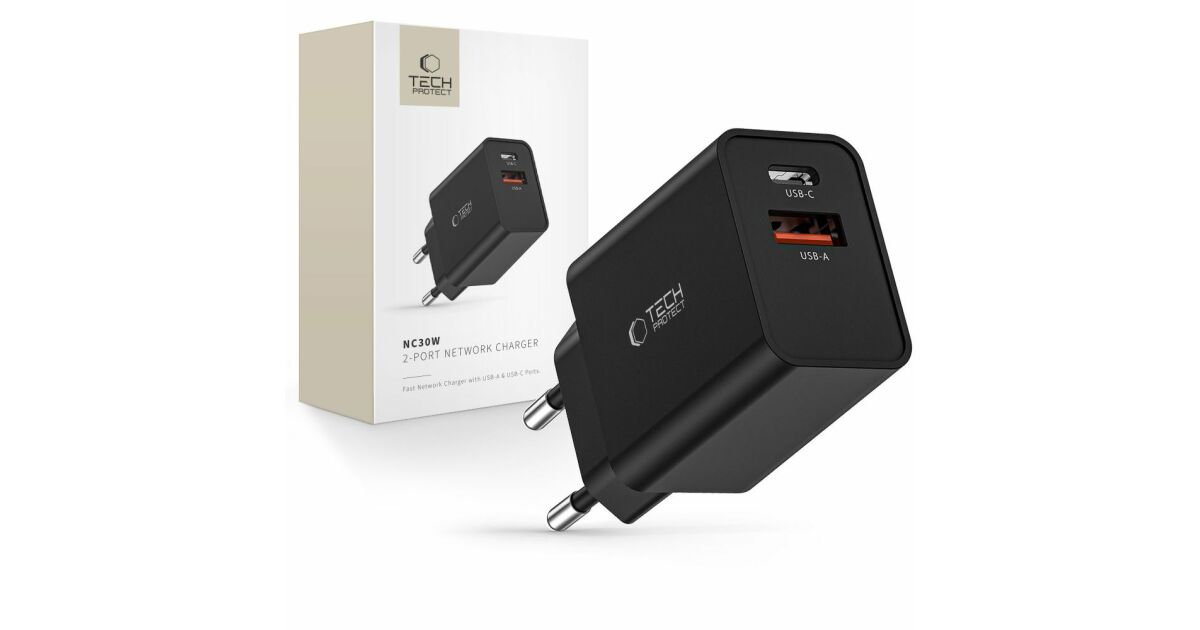 Tech-Protect NC30W 2-Port Schnellladegerät: Zwei Geräte gleichzeitig, blitzschnell! 🚀