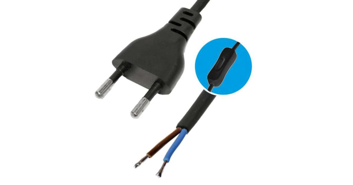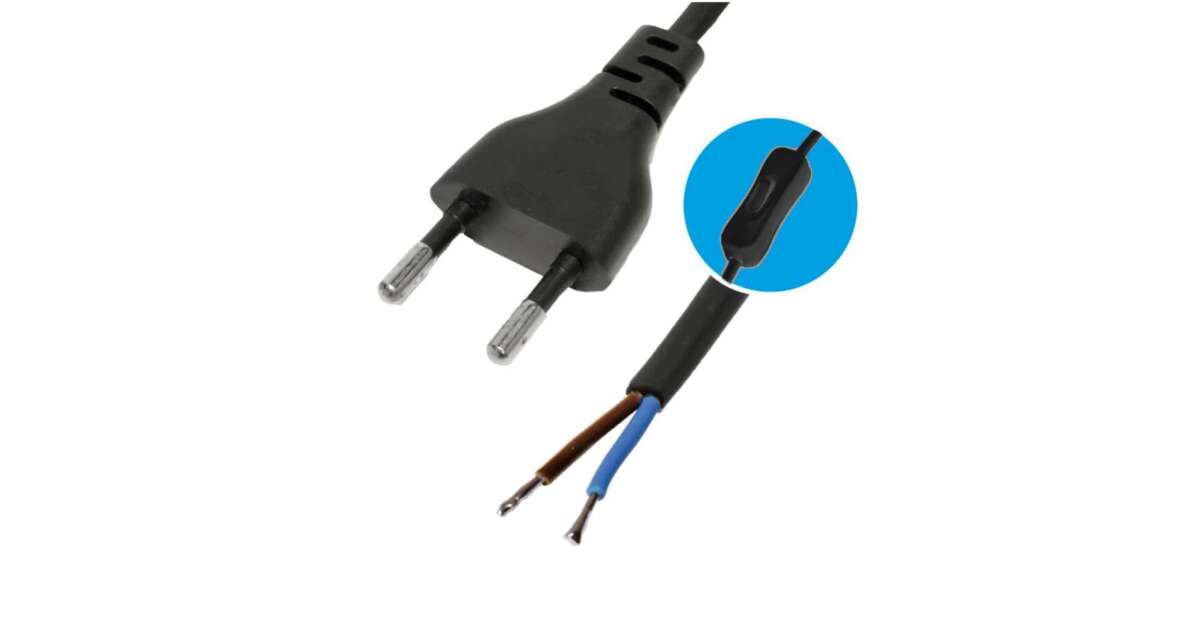 Home N 2K-2/BK Netzanschlusskabel mit Schalter, 2 m, H03VVH2-F mit 2x0,75 mm2 Kabel, einpoliger Schalter, max. 460 W Beschreibung