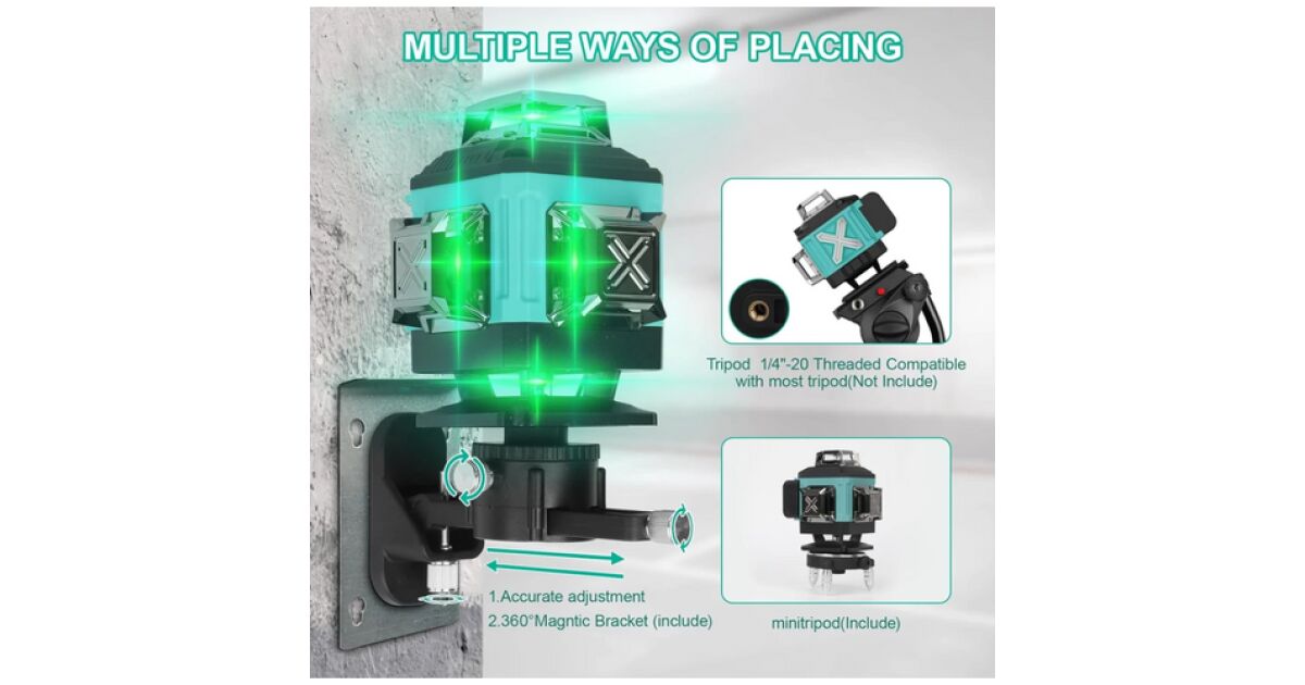- Leuchtend grüner Laser: Kristallklare Linien, auch bei Tageslicht gut sichtbar.