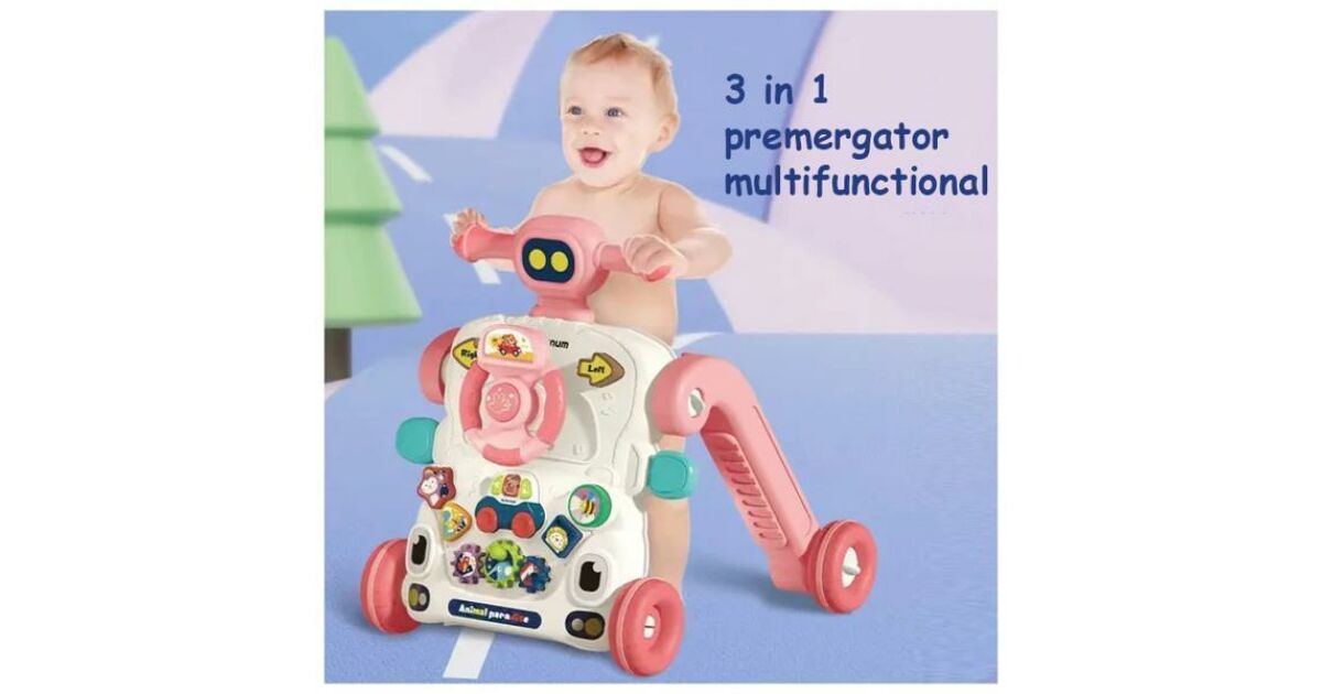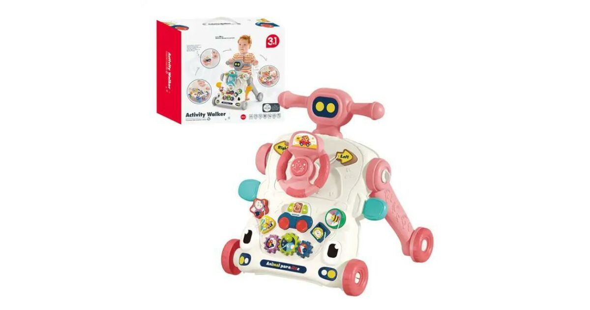WePro Store 3-in-1 Multifunktions-Aktivitätscenter-Gehhilfe, Anti-Kipp-Modus, Musiktastatur, Lichter und Geräusche, rutschfeste Räder, ab 6 Monaten, Rosa Beschreibung