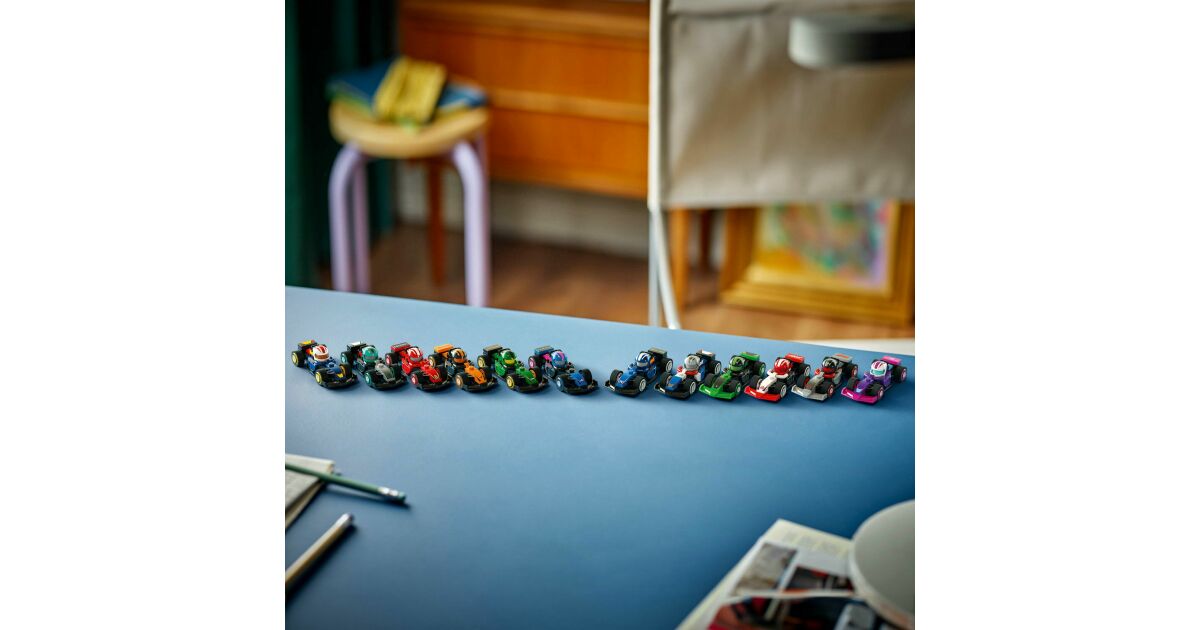 Spannende Rennen mit einem der 12 LEGO® F1® Mini-Rennwagen!
