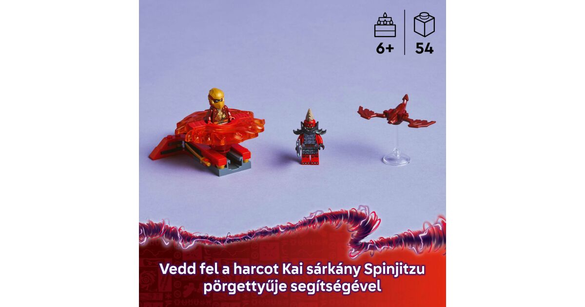 Mit diesem LEGO® NINJAGO® Set kannst du aufregende Spinjitzu-Abenteuer erleben! Das Set wird ab 6 Jahren empfohlen und enthält den Ninja Kai und einen bösen Dragonier-Späher, die in einem spannenden Kampf ihre Kräfte messen. Mit dem Kreisel kann Kai blitzschnell rotieren und beim Aufprall auf das Ziel sogar die Kraftelemente abwerfen!