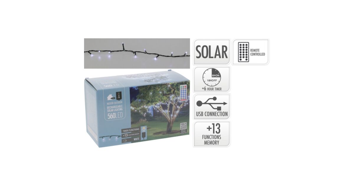Schmücke dein Zuhause, deinen Garten oder deine Terrasse mit dieser beeindruckenden, 11,2 Meter langen LED-Lichterkette! Mit 560 kaltweißen LEDs und 8 verschiedenen Beleuchtungsmodi schaffst du garantiert eine magische Stimmung. Dank des integrierten Solarpanels ist sie eine umweltfreundliche und sparsame Lösung, und du kannst sie sogar mit einer Fernbedienung steuern! ☀️