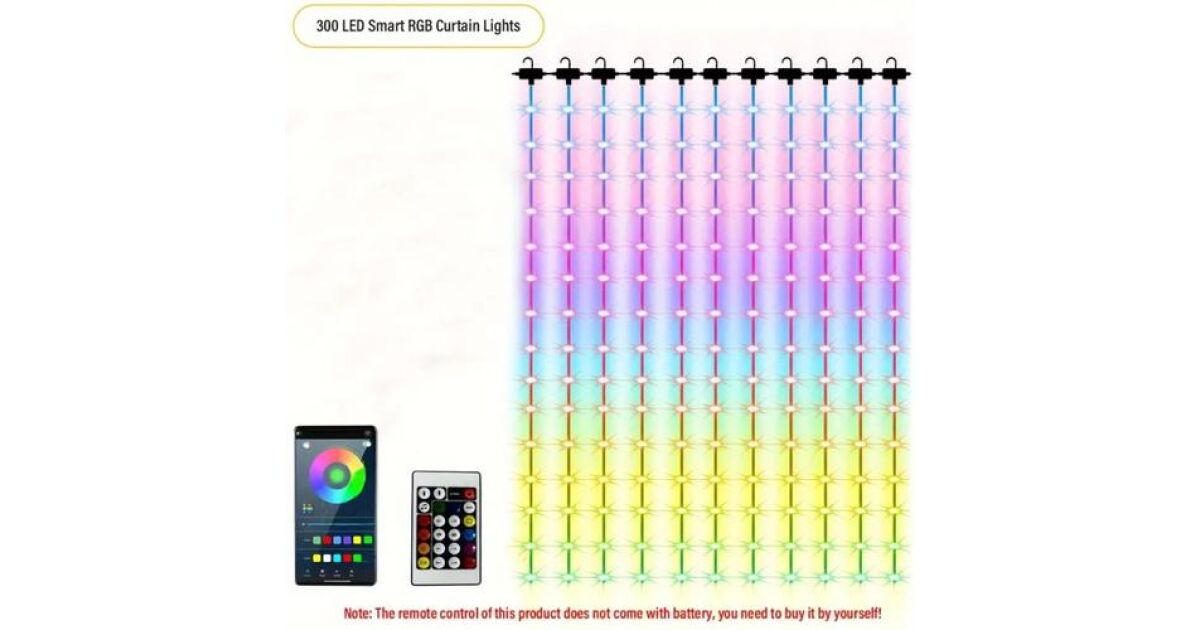 Intelligenter Bluetooth-RGBIC-Vorhang mit Fernbedienung und App-Steuerung, 3 x 3 m