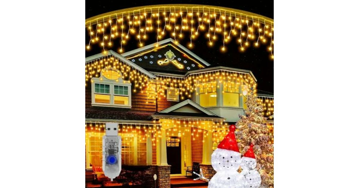 Weihnachtliche Eiszapfen-Lichterkette - 360 LEDs, 7,1 m, Warmweiß ✨