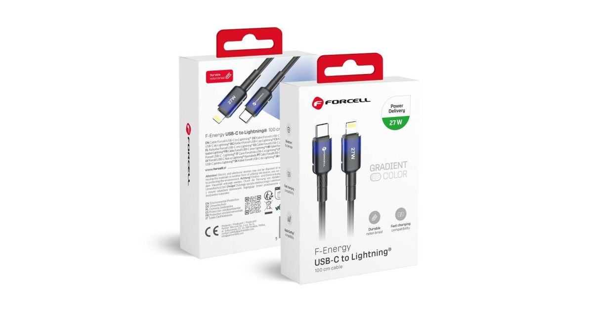 Forcell F-Energy USB C - Lightning kábel PD 3A 27W Gradient 1 m C356 fekete Beschreibung