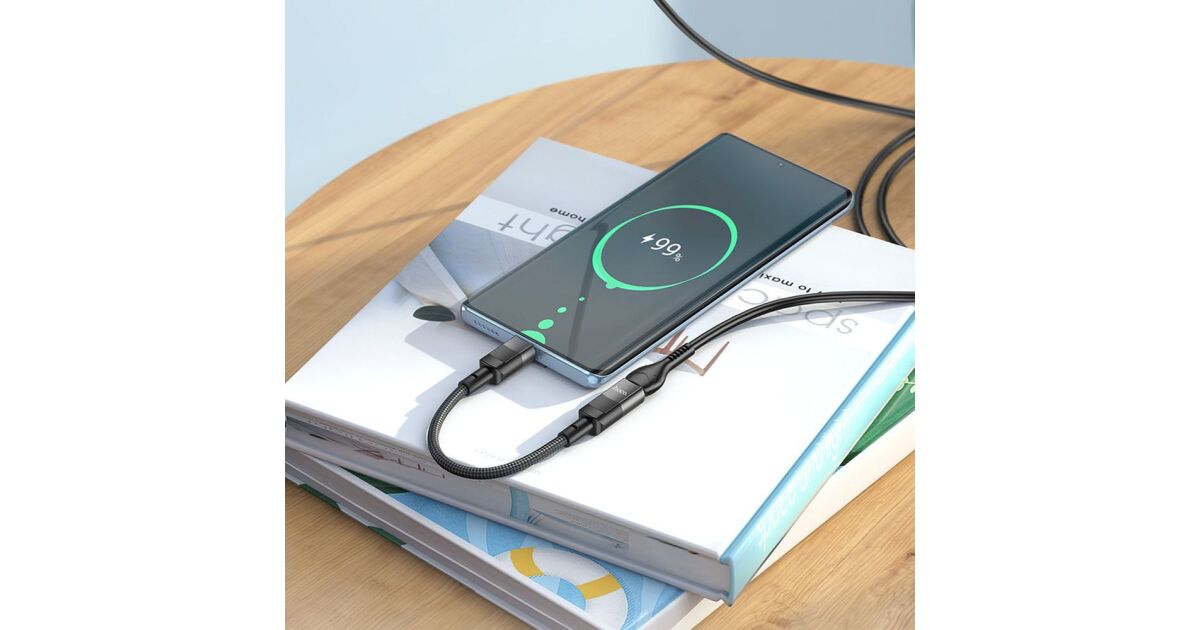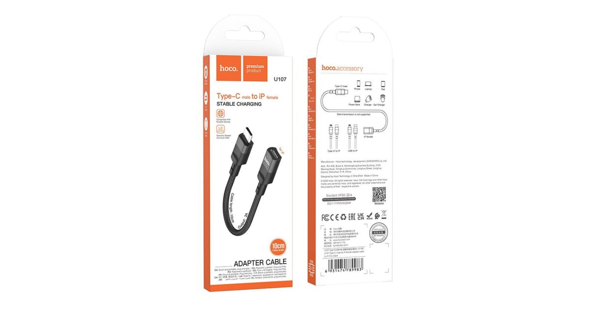 Mit diesem kompakten, 10 cm langen HOCO Adapterkabel kannst du dein USB-C Ladegerät mit deinem iPhone verbinden, das einen Lightning-Anschluss hat. Er ist einfach zu bedienen, strapazierfähig und bietet schnelle Datenübertragung.