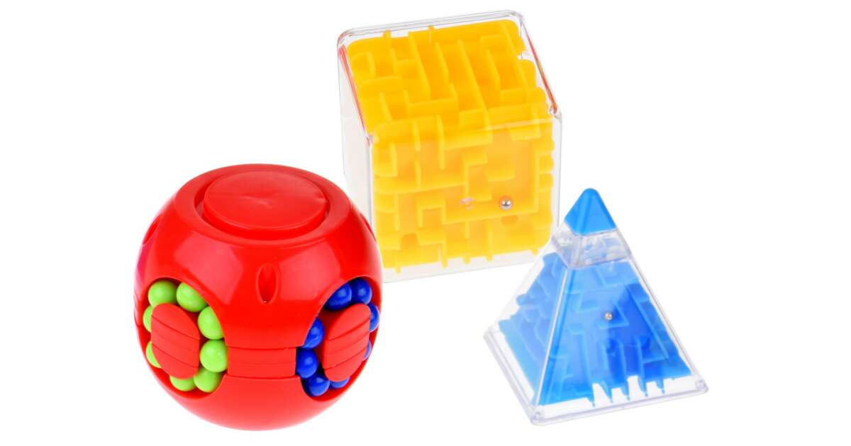 Dieses unterhaltsame und entwicklungsfördernde Spielset enthält 4 aufregende Spiele in einem: Rubik's Cube, Dreh-Puzzle und zwei verschiedene Labyrinthe (quadratisch und dreieckig). Die ideale Wahl für Kinder und Erwachsene!