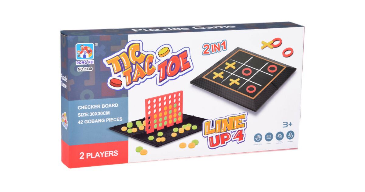 Dieses unterhaltsame 2-in-1-Spielset fördert die Planungsfähigkeiten, das logische Denken und die Beobachtungsgabe von Kindern. Es enthält zwei klassische Spiele in einer praktischen, tragbaren Box: Tic Tac Toe und Vier gewinnt!