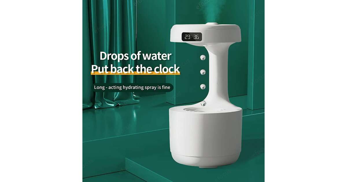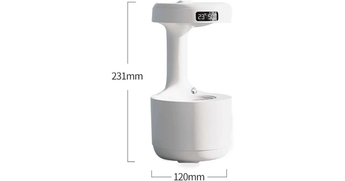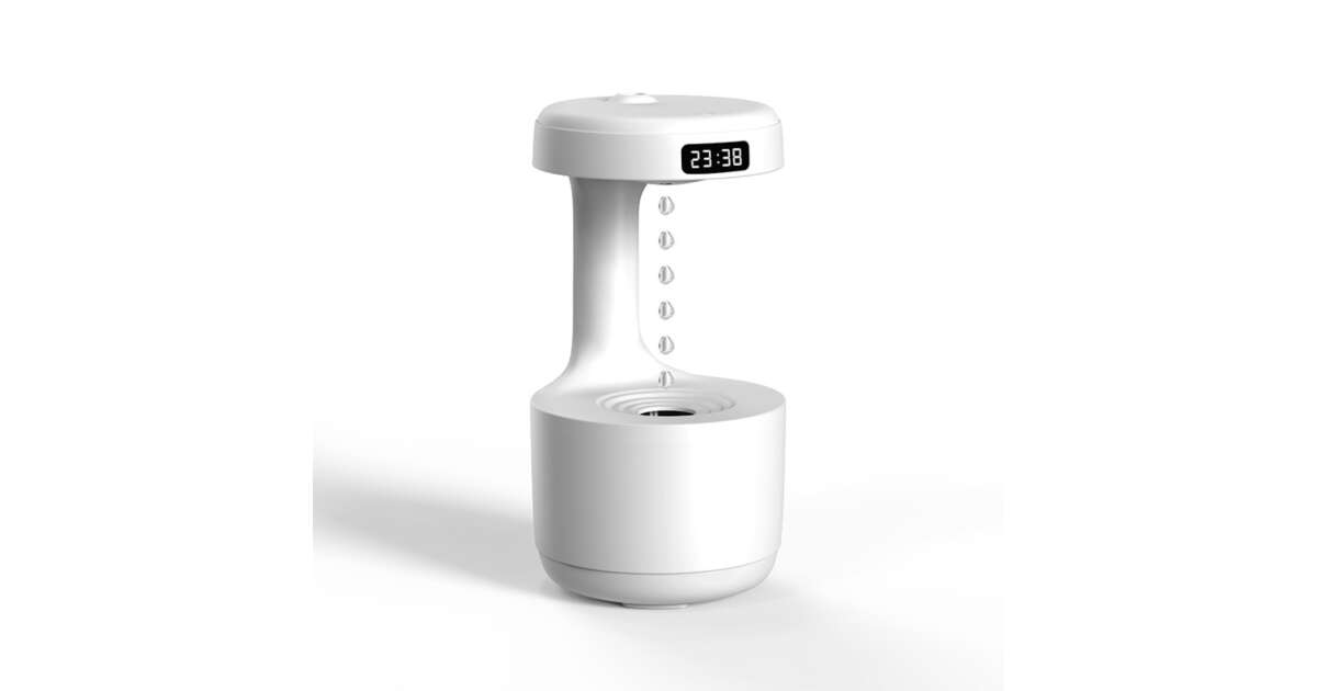Y&S Anti-Schwerkraft-Luftbefeuchter, Aromatherapie-Diffusor mit Wassertropfen-Fassungsvermögen 800ml, Anti-Trocknungssensor, Umgebungslicht, leiser, stabiler Sockel, Digitaluhranzeige, weiß Beschreibung