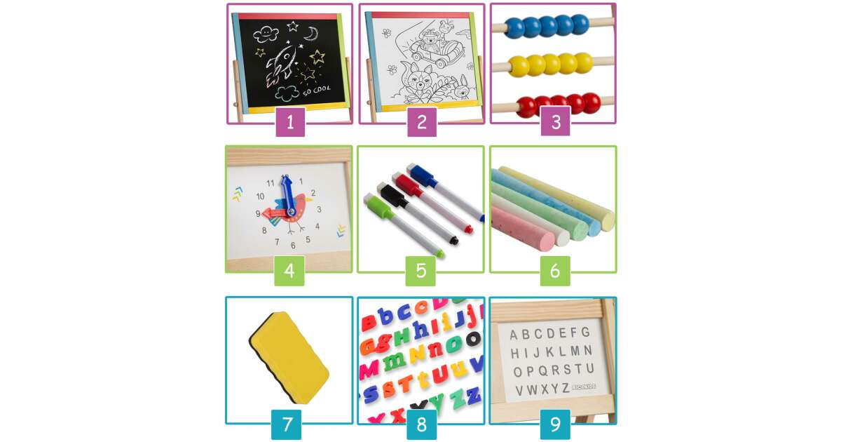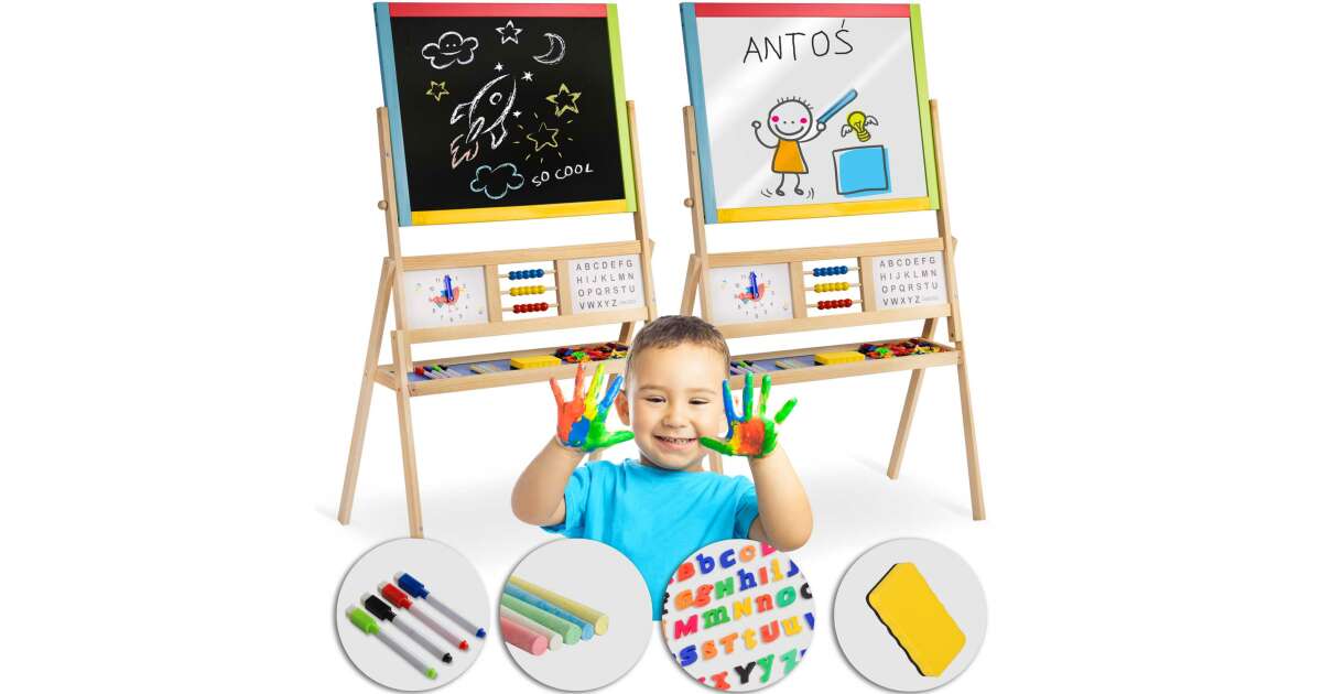 Diese große, multifunktionale Zeichentafel ist die perfekte Wahl für kreative und lernfreudige Kinder! Dank ihrer zwei Seiten bietet sie sowohl eine Kreidetafel als auch eine magnetische Tafeloberfläche, so dass Spaß und Lernen garantiert sind.