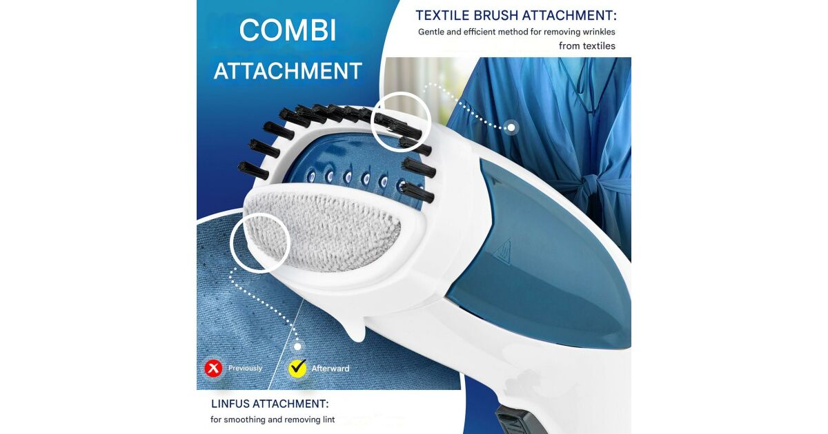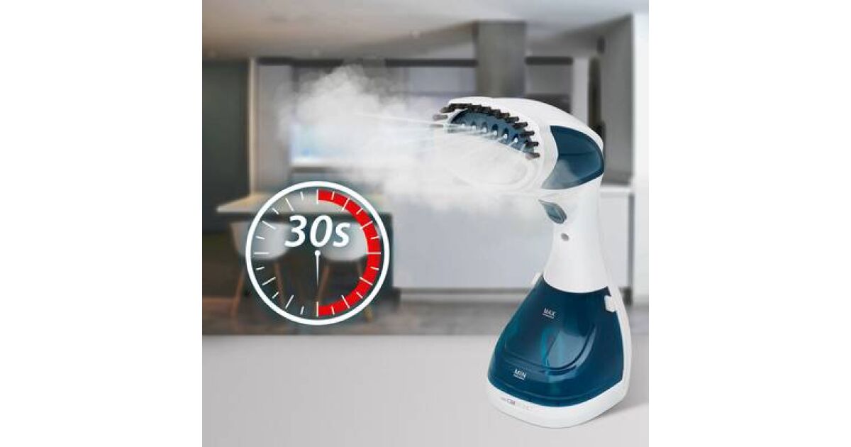Clatronic DB 3717 2in1 Manueller Wäschedampfer und Dampfbürste, 200 ml, 1100 W, Vertikaldampf, 30 Sek. Aufheizzeit, Weiß-Blau Kaufen: