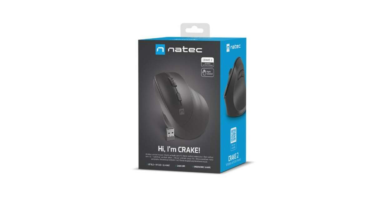 Мишка Natec Vertical Mouse Crake 2 BLUETOOTH 5.2 + 2.4GHZ BLACK 2400dpi, Right handed, black Beschreibung