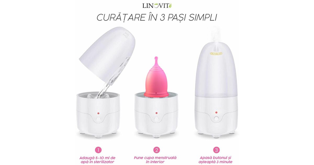 Verabschiede dich von Einwegbinden und Tampons! Dieses Linovit® Menstruationscup Set bietet eine sichere, wirtschaftliche und umweltfreundliche Alternative für die Menstruationstage. Das Set enthält zwei wiederverwendbare Menstruationscups (25 ml und 30 ml) und einen elektrischen Dampfsterilisator, der die Cups schnell und effektiv ohne Chemikalien desinfiziert.