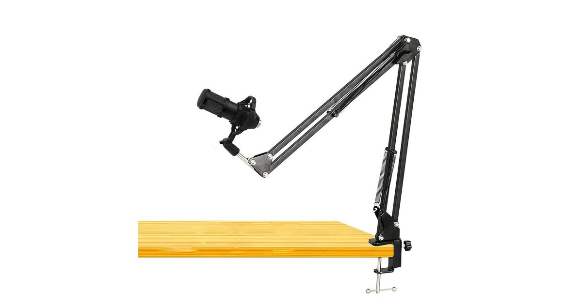 - Verstellbarer Tischmikrofonständer mit Doppelarm für flexible Positionierung.