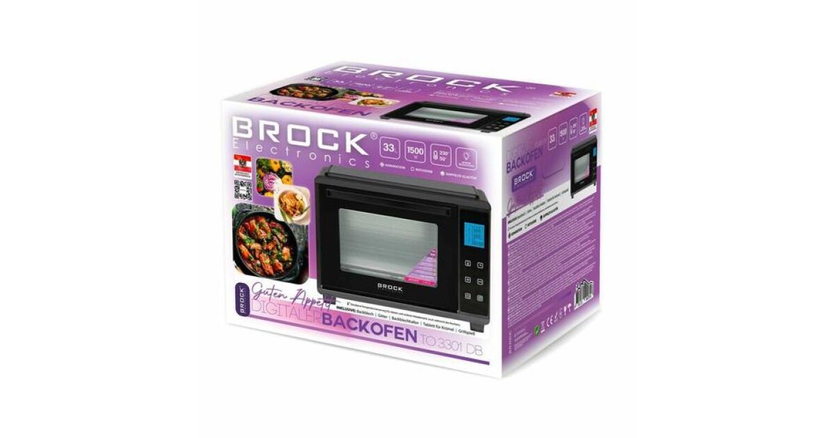 Brock TO 3301 DB, 1500W, 33 L, 8 Programme, Digital, Drehspieß, Luftmischung, Schwarz, Elektroofen Beschreibung