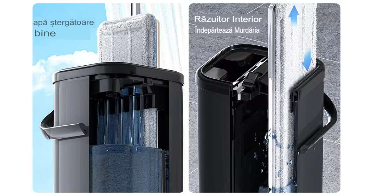 - Flacher Moppkopf: Große Oberfläche, reinigt effizient alle Arten von Böden (Fliesen, Holz, Vinyl).
