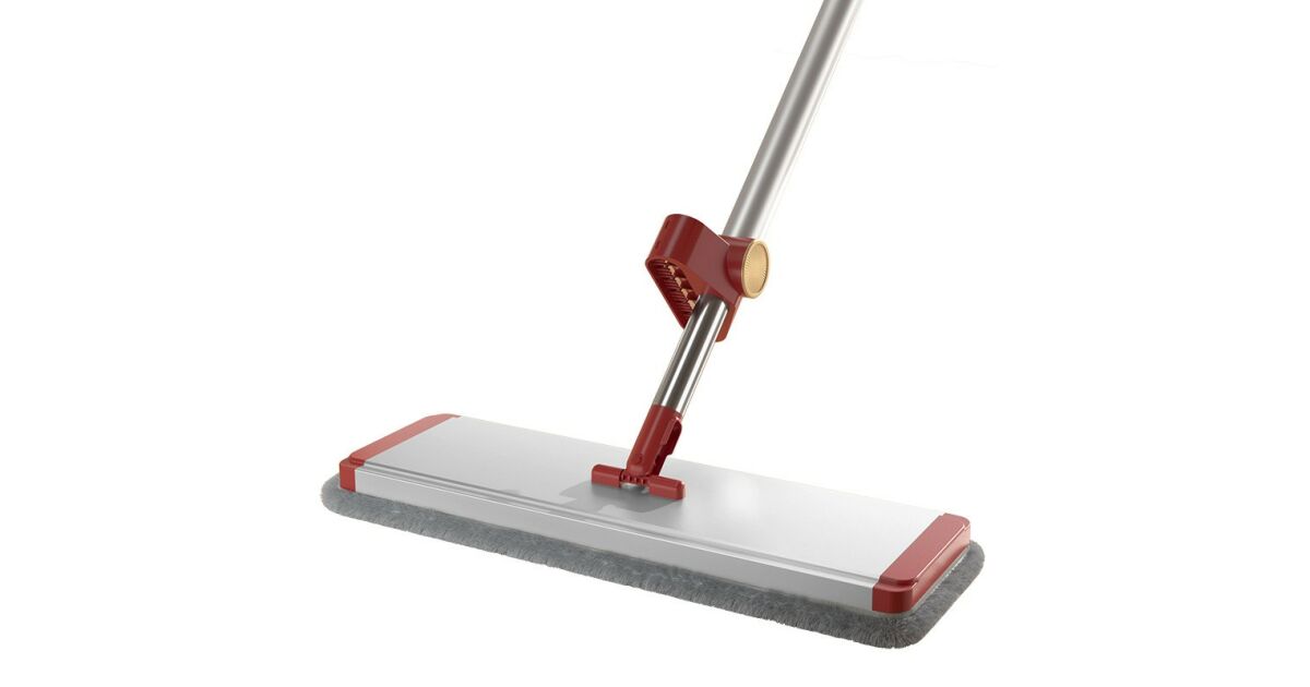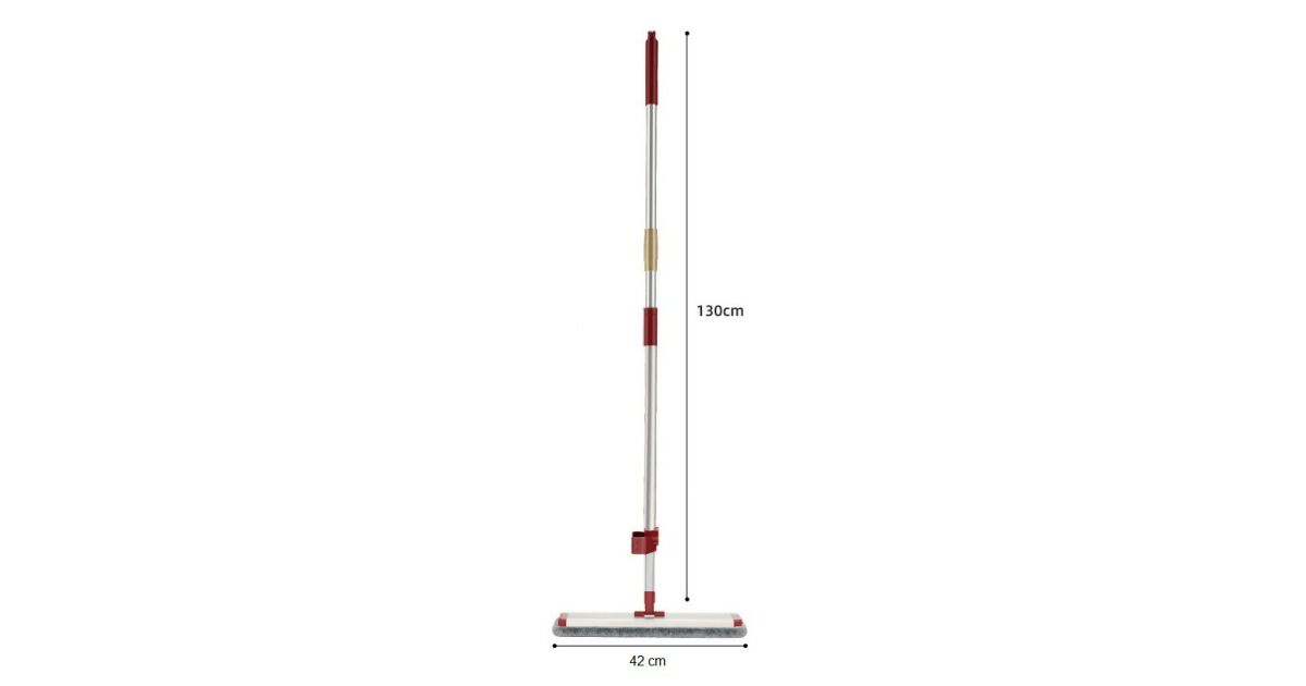 Flachwischer mit Mikrofasertuch, Flippy, für den Hausgebrauch, inklusive 2 Tüchern, Auswringsystem, 130 cm Teleskopstange, 360° drehbar, 42 x 130 cm, Rot Beschreibung