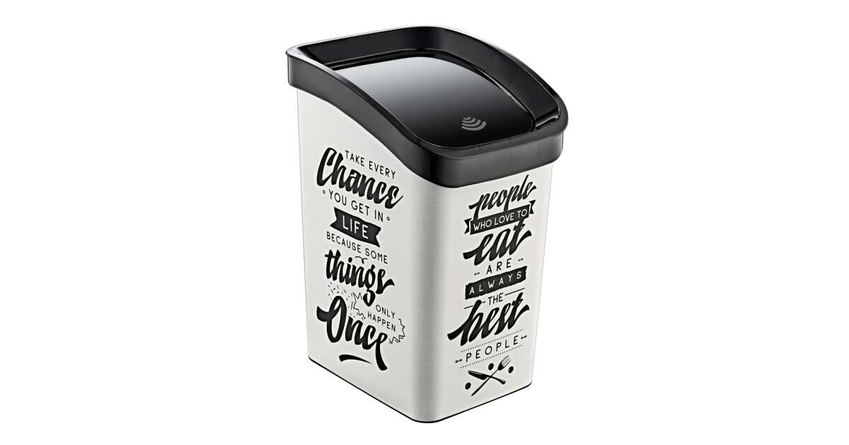 Kunststoff-Mülleimer Smart Click mit Klappdeckel, weiß/schwarz gemusterter Schriftzug GOGO 23L Beschreibung