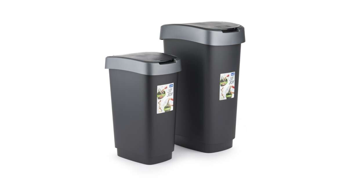 Mülleimer Rotho Twist zur Trennung, kippbar, 25 l, grau (TWIST 25L, Stift)