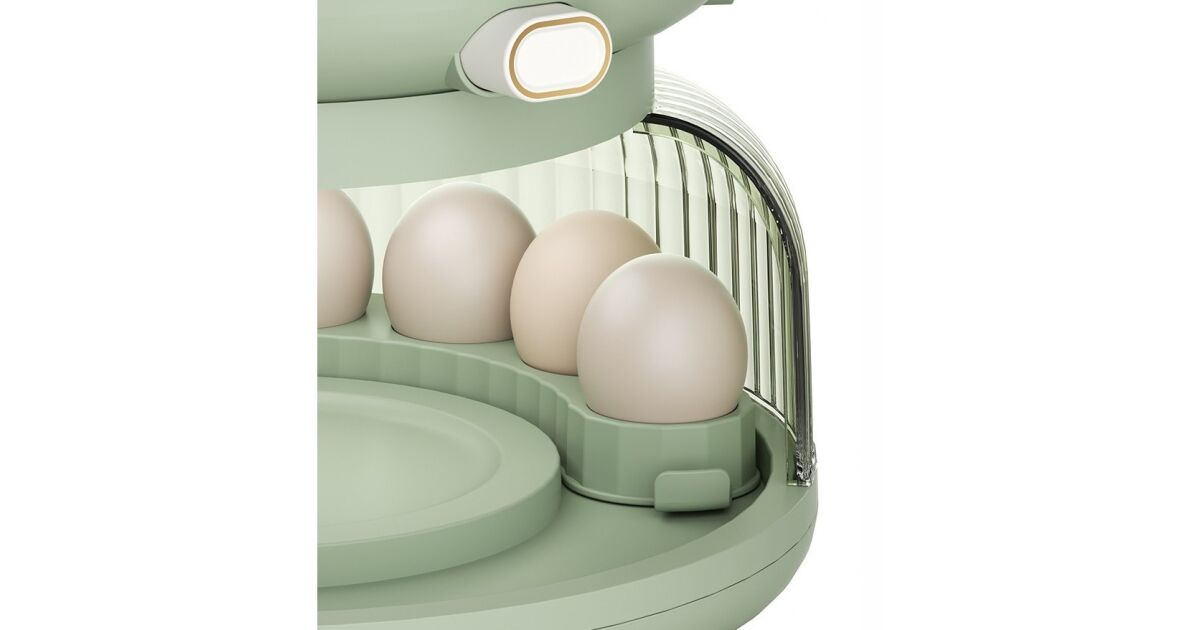 Flippy Etagen-Müslispender, 360° drehbar, 6 Fächer, 10L Fassungsvermögen, spezielle Eierablage, Müsli-Abtropfschale, 35x27,5 cm, Grün Beschreibung