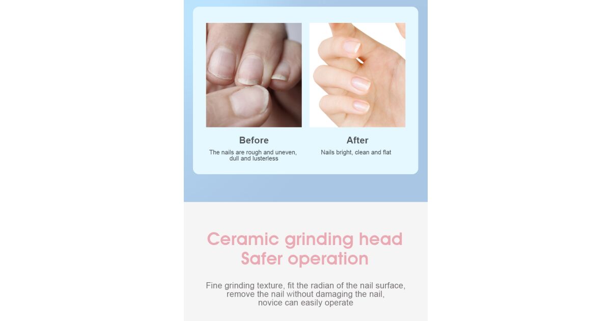 Vorteile und Nutzen: • Vielseitigkeit: Geeignet sowohl für Maniküre als auch für Pediküre, sorgt für gepflegte und schöne Nägel. • Zeit- und Geldersparnis: Ideal für den Einsatz zu Hause, bietet professionelle Ergebnisse, ohne in ein Nagelstudio gehen zu müssen. • Sicherheit und Komfort: Dank der einstellbaren Geschwindigkeit und der umkehrbaren Drehrichtung ist das Gerät einfach zu bedienen und sicher, auch für Anfänger. • Tragbar und einfach zu bedienen: Das ergonomische Design macht es ideal für Reisen und immer griffbereit.