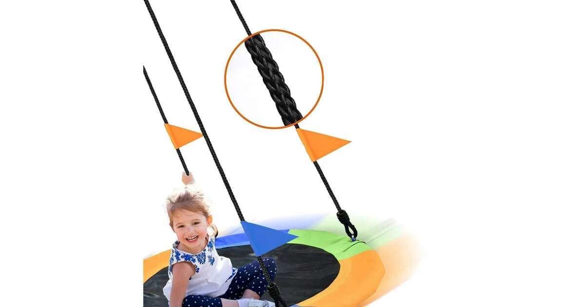 - Hochwertige Gartenschaukel - Solide Konstruktion - Belastbarkeit bis 120 kg - Für Kinder und Erwachsene geeignet - Großer, bequemer Sitz, 100 cm Durchmesser - Lange, starke Aufhängeseile, verstellbar bis 180 cm - Solider, verzinkter Stahlrahmen - Verstärktes Sitzmaterial - Wetterfest (Oxford 600D-Gewebe) - Sicher - Schaumstoff am Rahmen, sichere, abgerundete Muttern - Einfache, langlebige Konstruktion - Einfache Montage