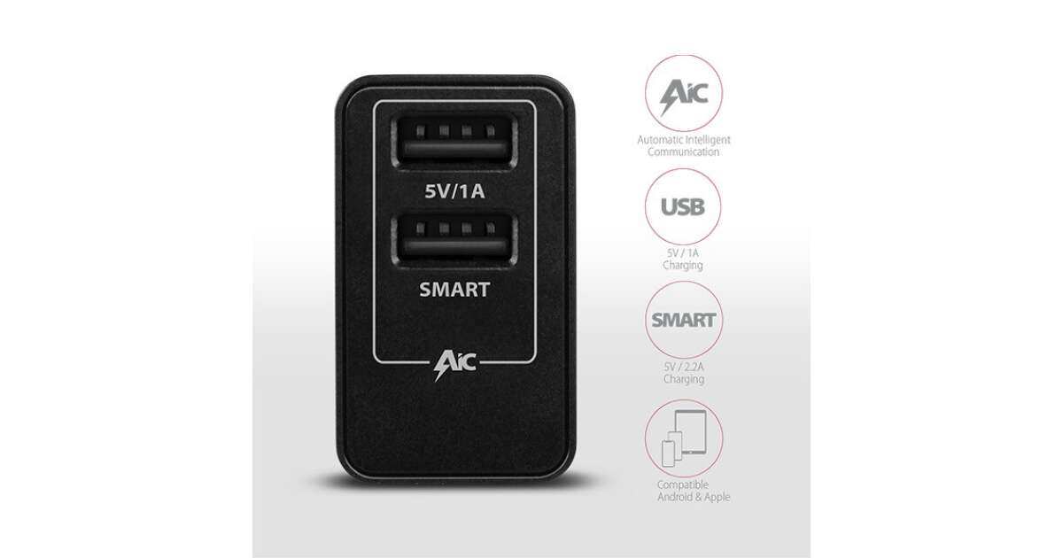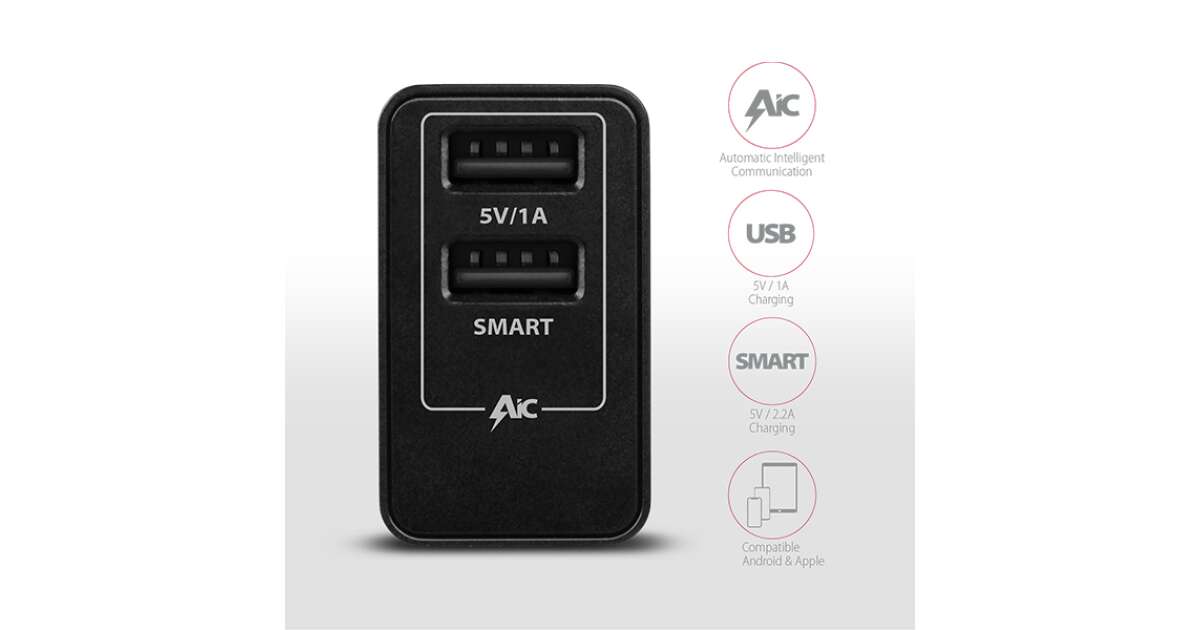 - Zwei USB-Ausgänge: 1x 5V/1A und 1x SMART 5V/2.2A, kompatibel mit den meisten Geräten.