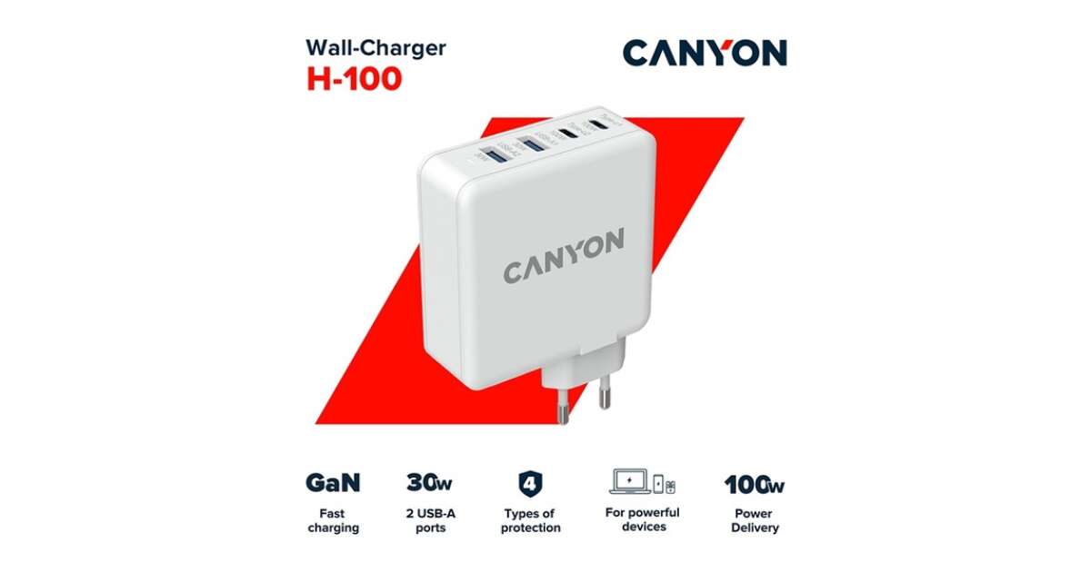 -Canyon H-100 2x USB-C / 2x USB-A Netzwerkladegerät - Weiß (100W) Beschreibung