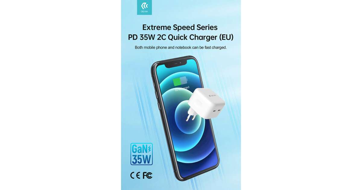 Verschwende keine Zeit mit langsamem Laden! Wähle das Devia GaN 35W Dual Type-C Ladegerät und genieße blitzschnelles Laden!
