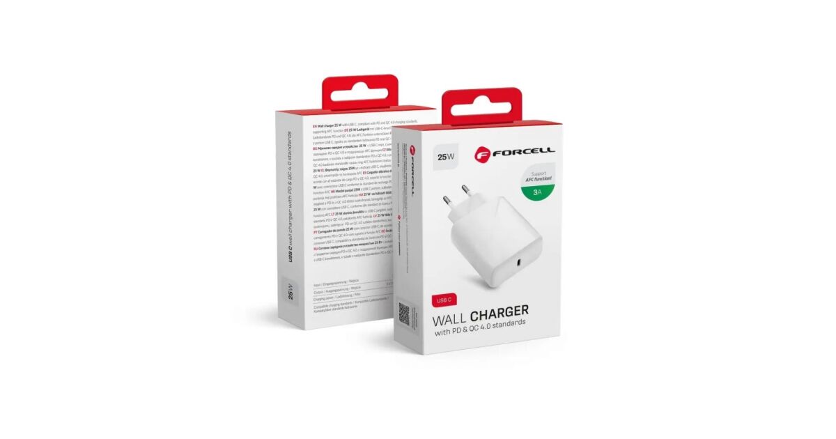 Mach dir nie wieder Sorgen um einen leeren Akku! Mit dem Forcell 25W USB-C Schnellladegerät hast du immer die Lösung zur Hand.