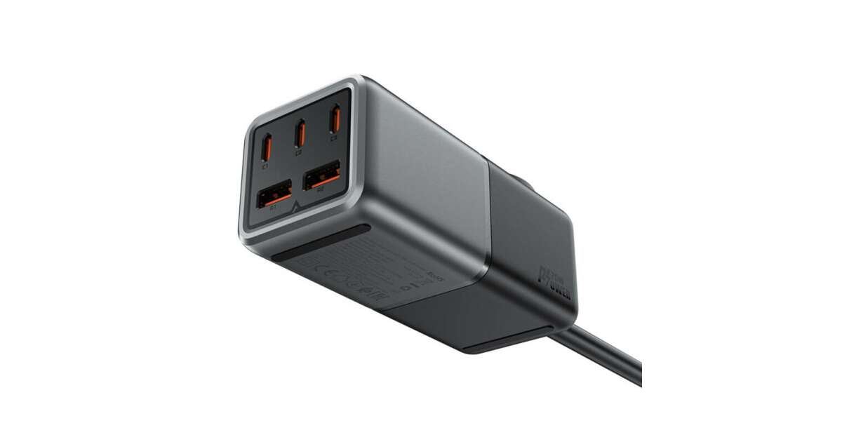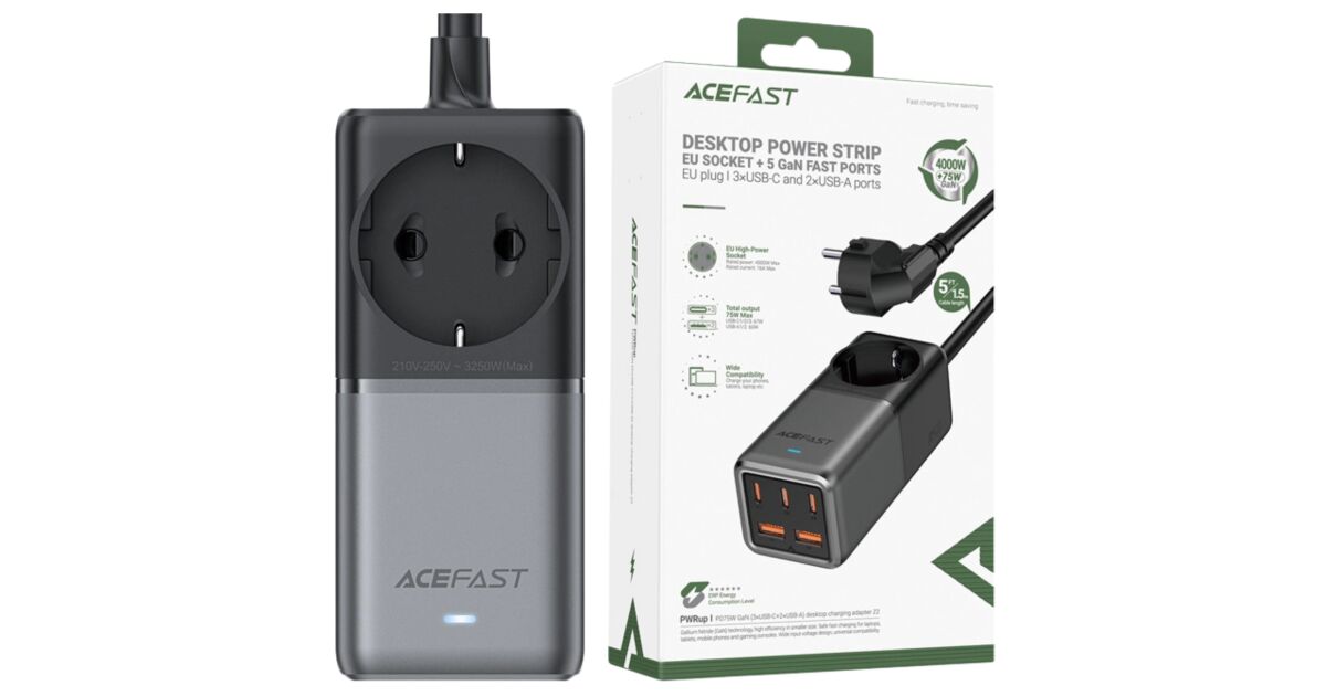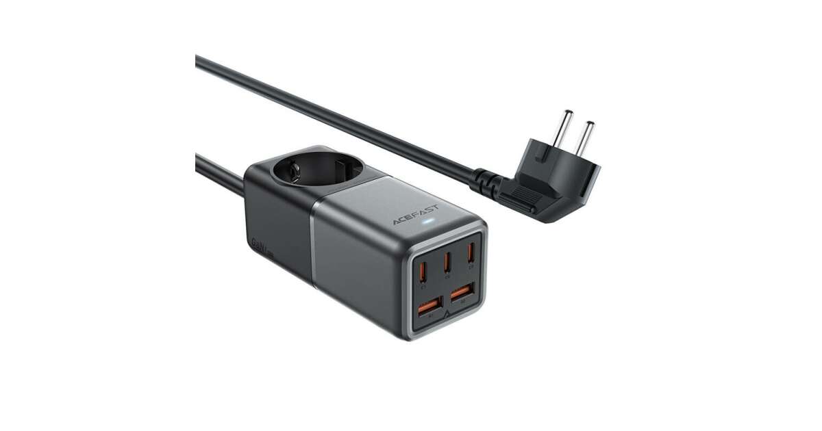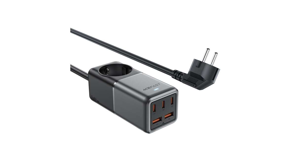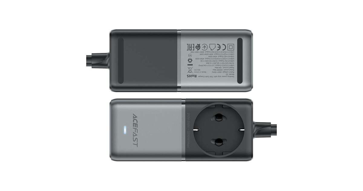 Der Acefast Z2 ist mehr als nur ein einfacher Verteiler; er ist ein effizientes 75W GaN Ladegerät und Verteiler in einem! Du kannst bis zu 6 Geräte gleichzeitig laden, dank der 4000W AC-Steckdose und den 5 USB-Anschlüssen (2x USB-A, 3x USB-C).