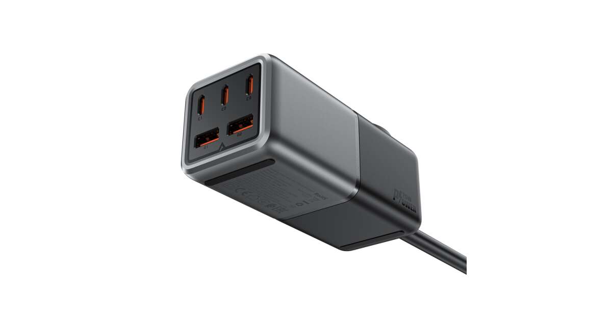 Splitter, Netzteil Acefast Z2, GaN, 3x USB-C, 2x USB-A, 75W, schwarz Beschreibung