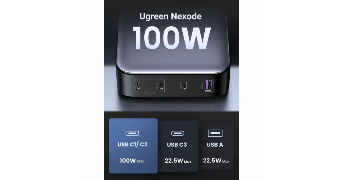 UGREEN Nexode 100W GaN Ladegerät: 4 Anschlüsse, Schnellladetechnologie 🚀