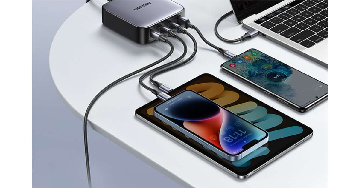 Mit dem UGREEN Nexode 100W GaN Ladegerät kannst du bis zu 4 Geräte gleichzeitig blitzschnell aufladen! Die 3 USB-C und 1 USB-A Anschlüsse bieten breite Kompatibilität, egal ob Smartphone, Tablet, Laptop oder andere USB-Geräte. Dank der fortschrittlichen GaN-Technologie ist es trotz seiner kompakten Größe äußerst effizient und sicher.