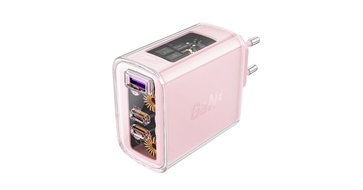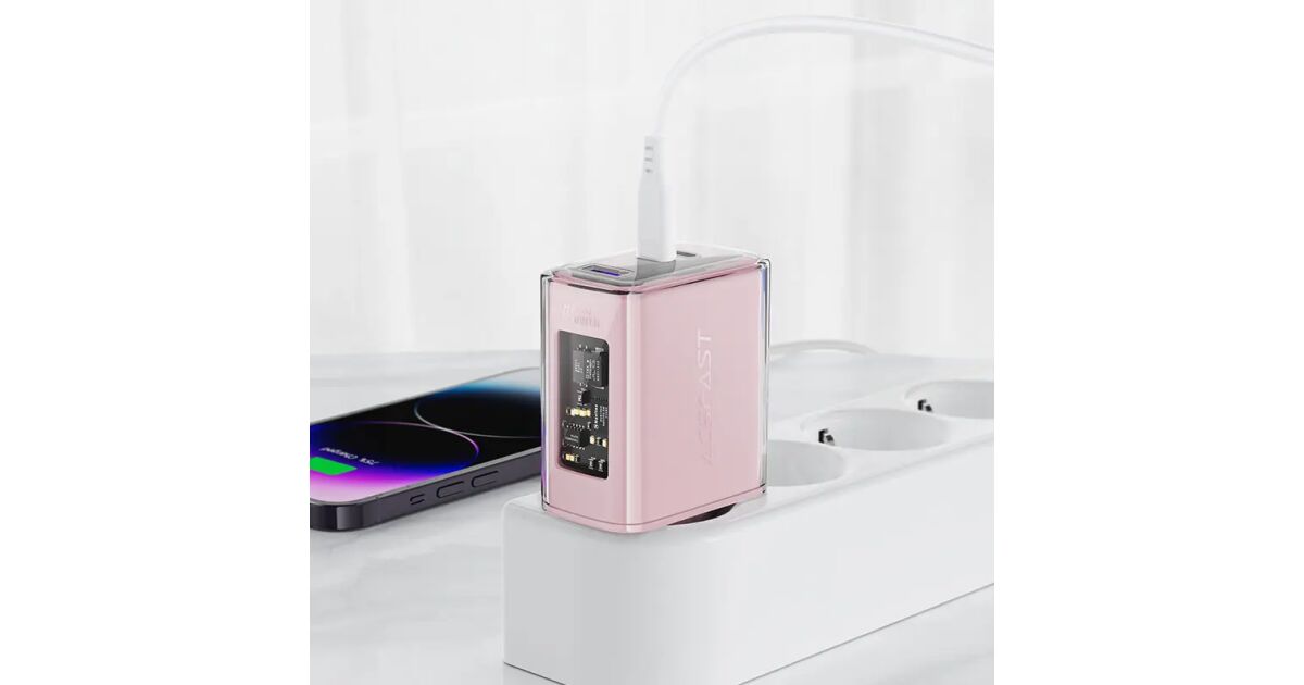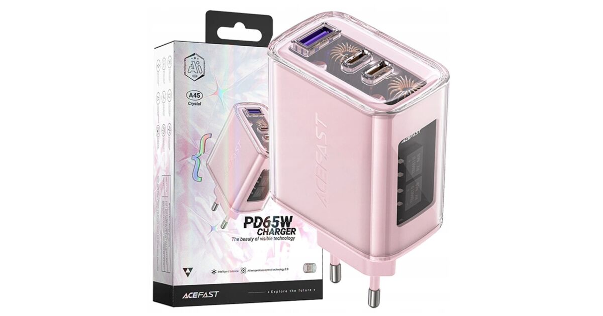 Adapter Acefast A45, 2x USB-C, 1xUSB-A, 65W, PD, rosa Beschreibung