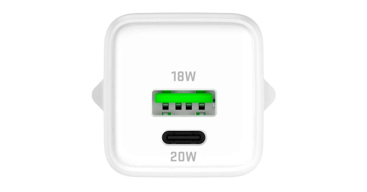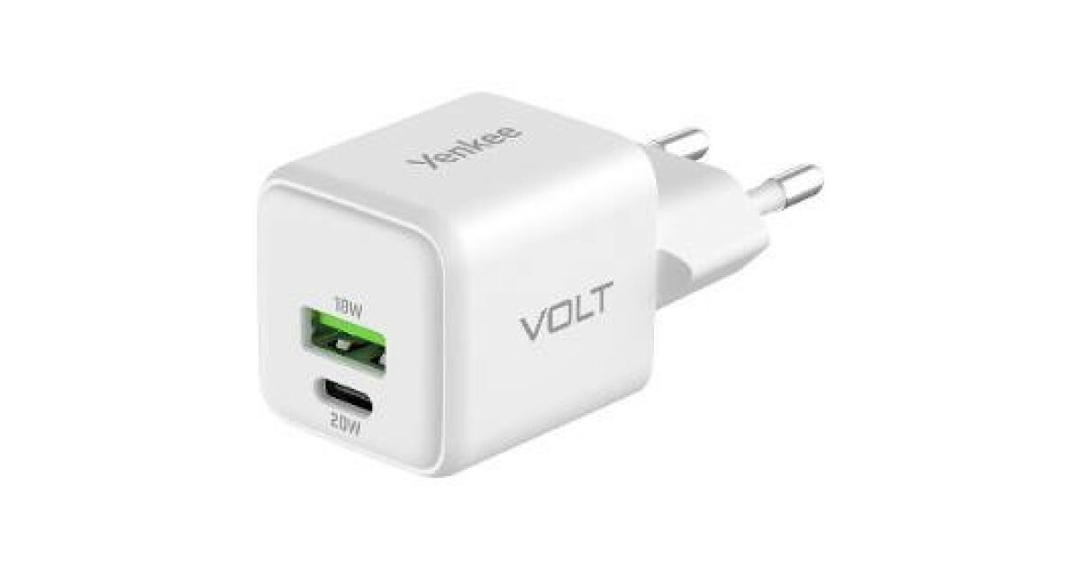 Yenkee YAC G38 Volt GaN 1x USB Typ-C / 1x USB Typ-A Netzwerkladegerät - Weiß (20W) Beschreibung