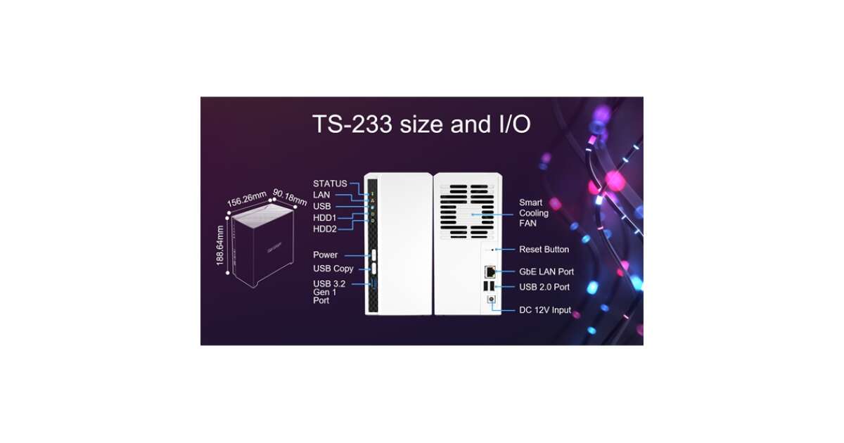 Bau dir deine eigene sichere private Cloud mit dem QNAP TS-233 2-Bay NAS! Einfacher Dateizugriff, Freigabe und Synchronisierung – perfekt für den Einsatz zu Hause und in kleinen Unternehmen. Genieße schnelle und zuverlässige Datenverwaltung, fortschrittliche Sicherheitsfunktionen und vielfältige Multimedia-Möglichkeiten.