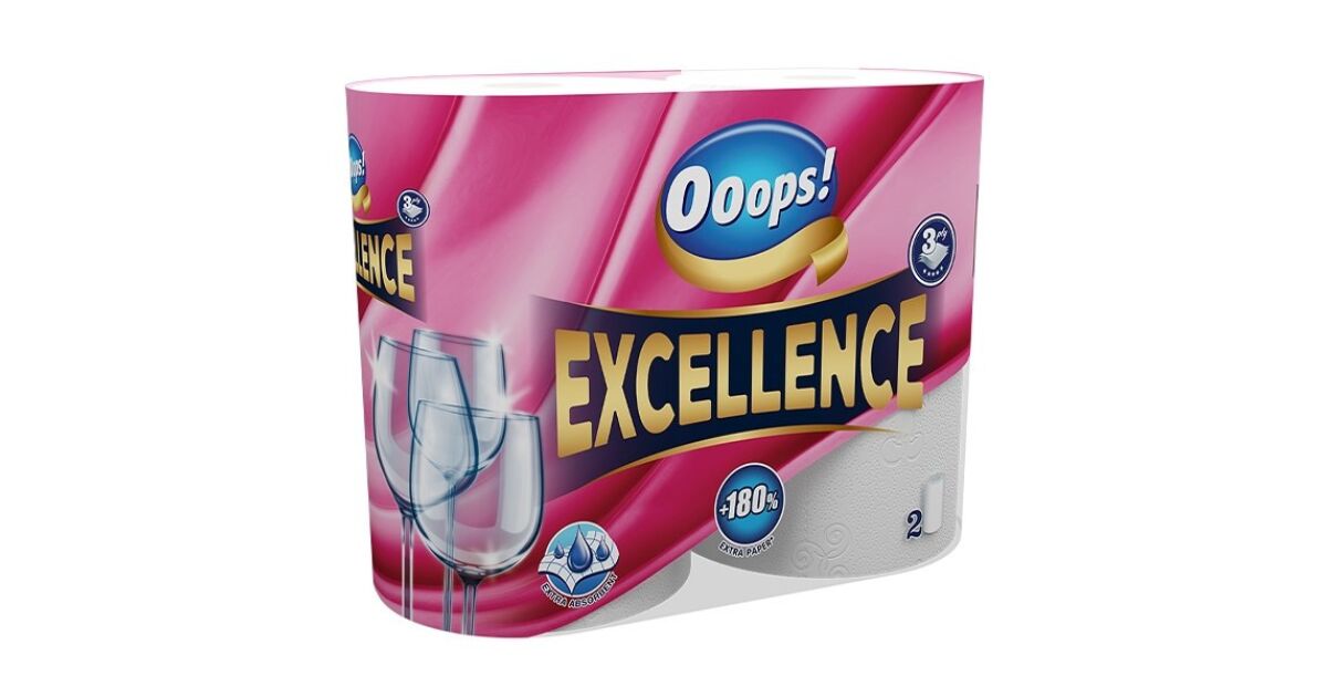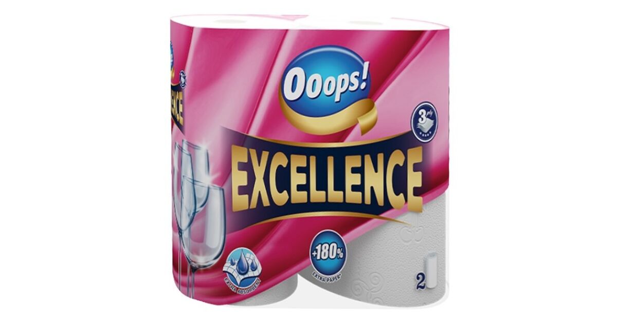 Haushalts Papiertuch, 3-lagig, 2 Rollen, "Ooops! Exzellenz"
