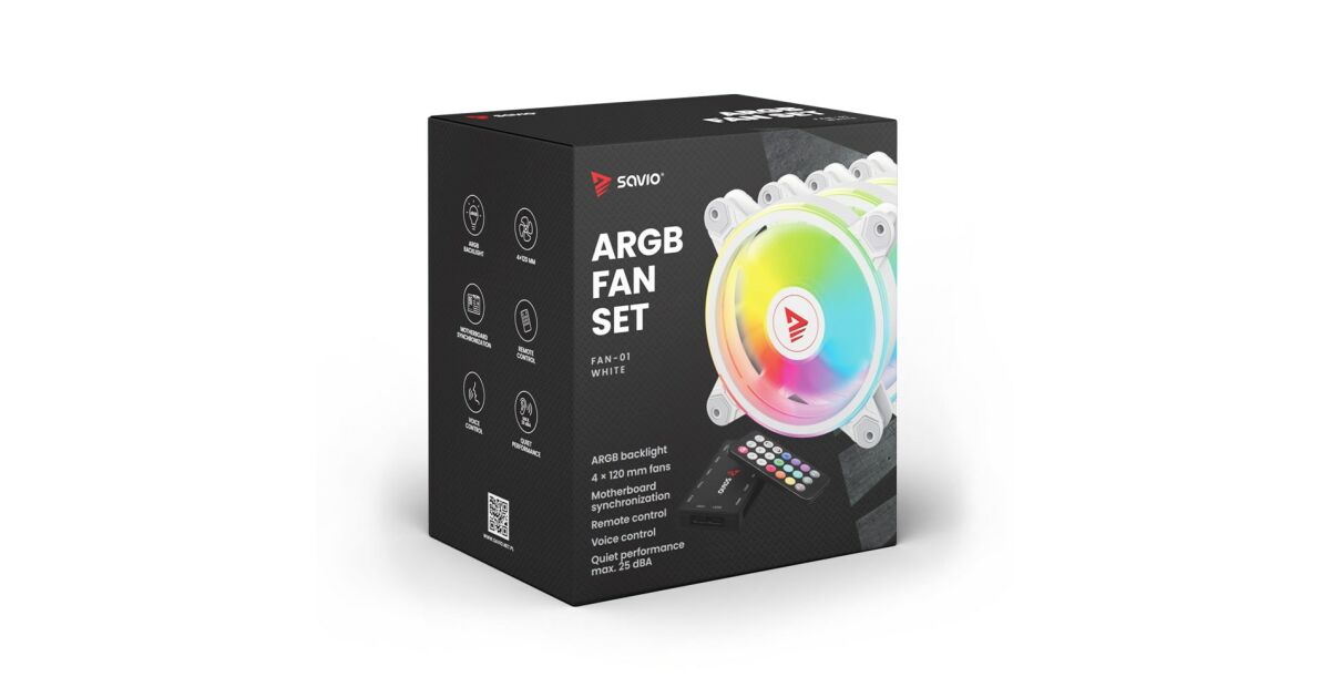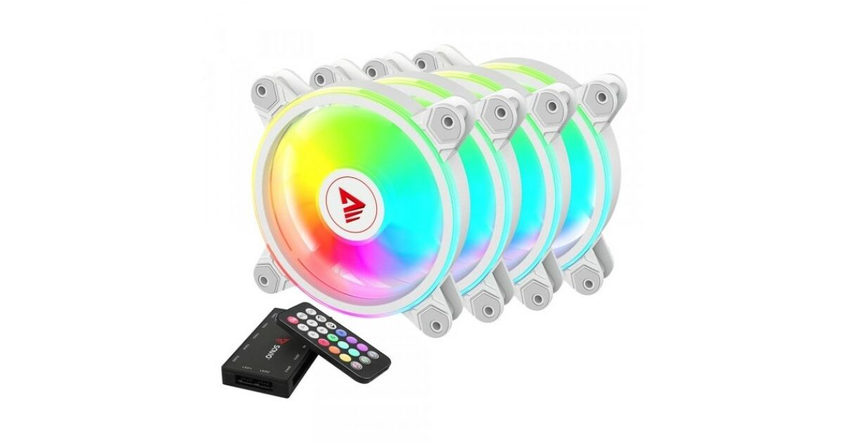 FAN-01 120-mm-ARGB-Lüfter mit Controller und Fernbedienung, Weiß, 4er-Pack