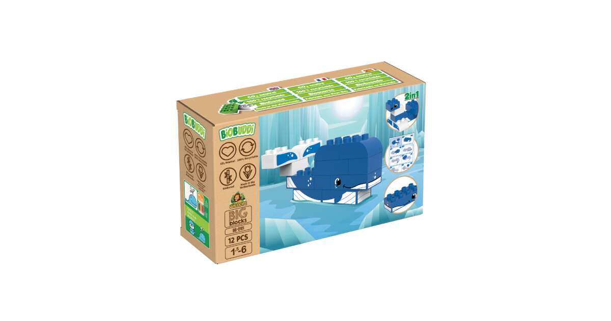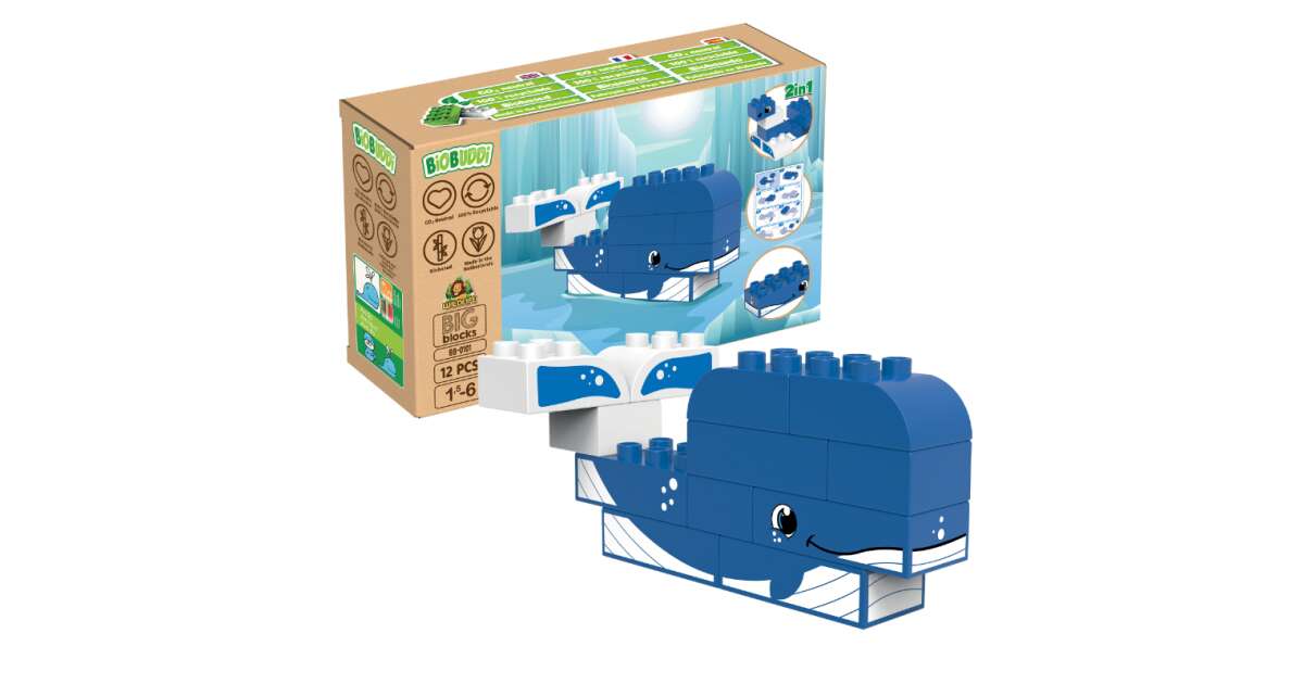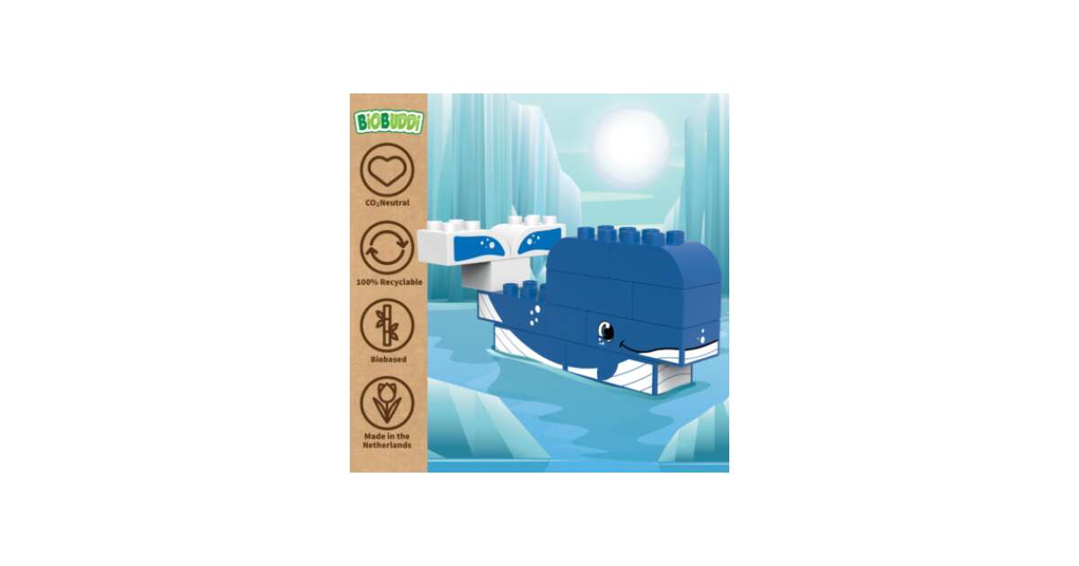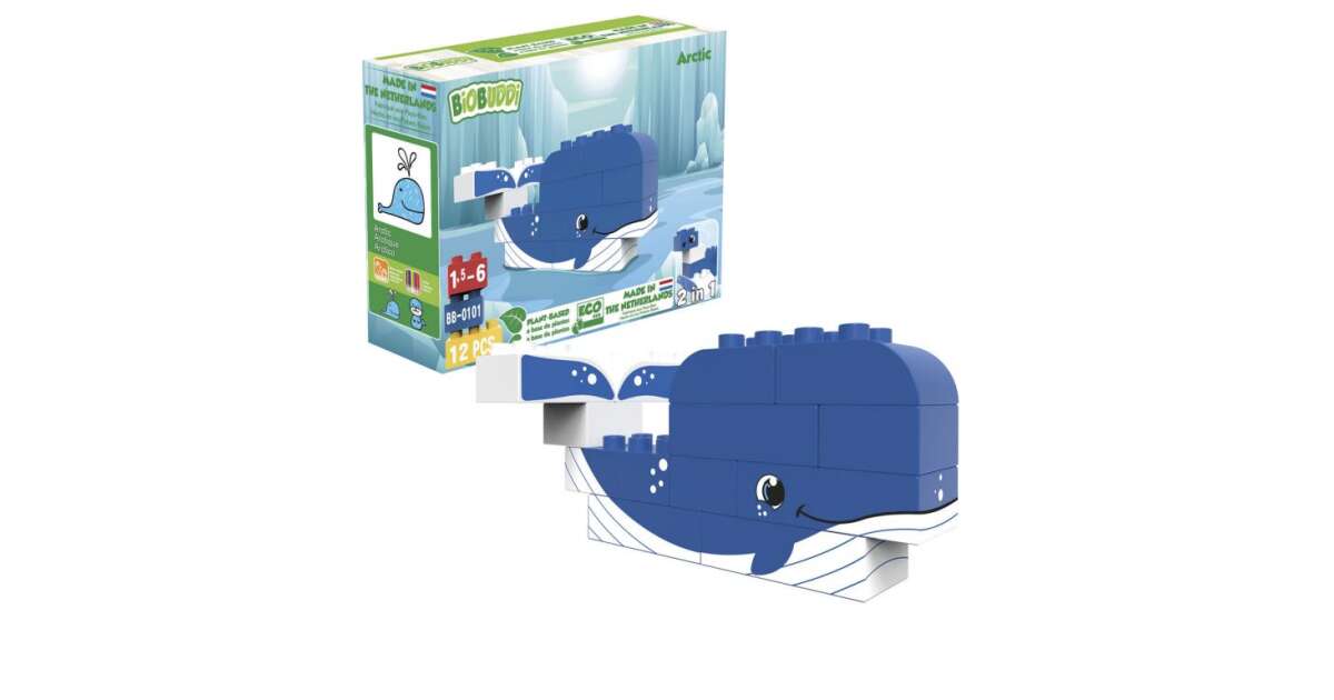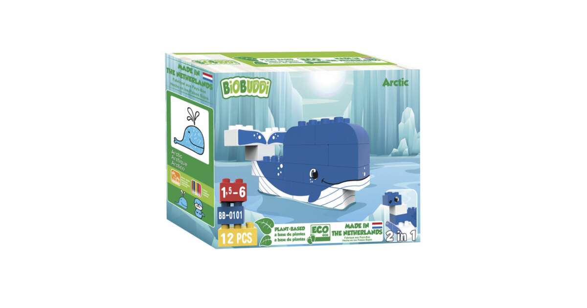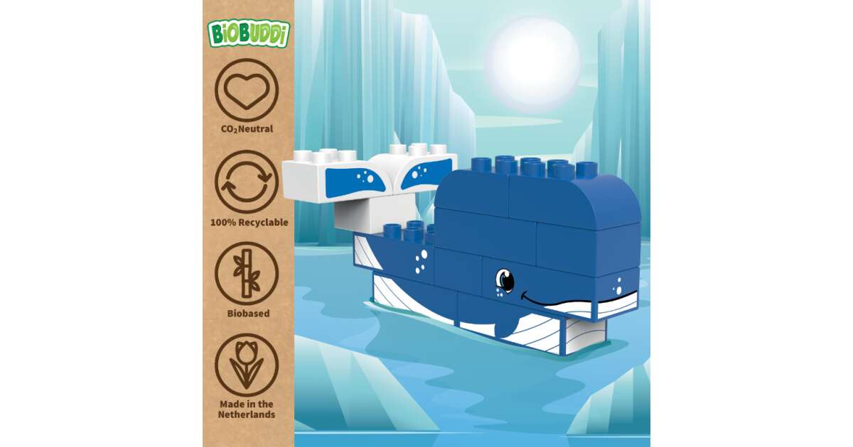 Entdecke die Wunder der eisigen Arktis mit diesem 2-in-1 BiOBUDDi Bauset! Aus 12 biobasierten Bausteinen kannst du einen süßen Wal oder eine lustige Robbe bauen. Das Spiel fördert die Kreativität, die Feinmotorik und das Erkennen von Farben und Formen.