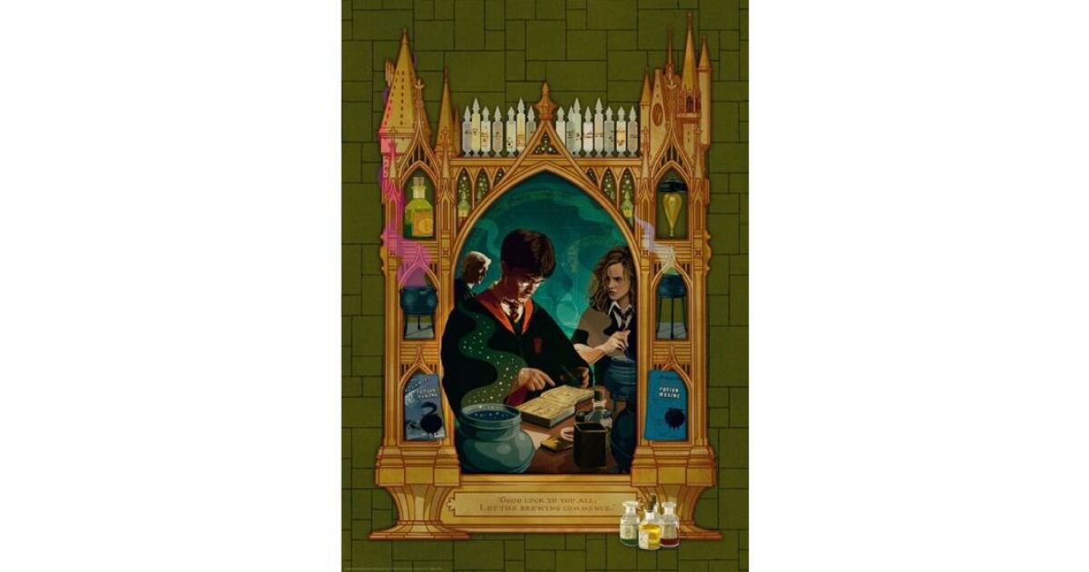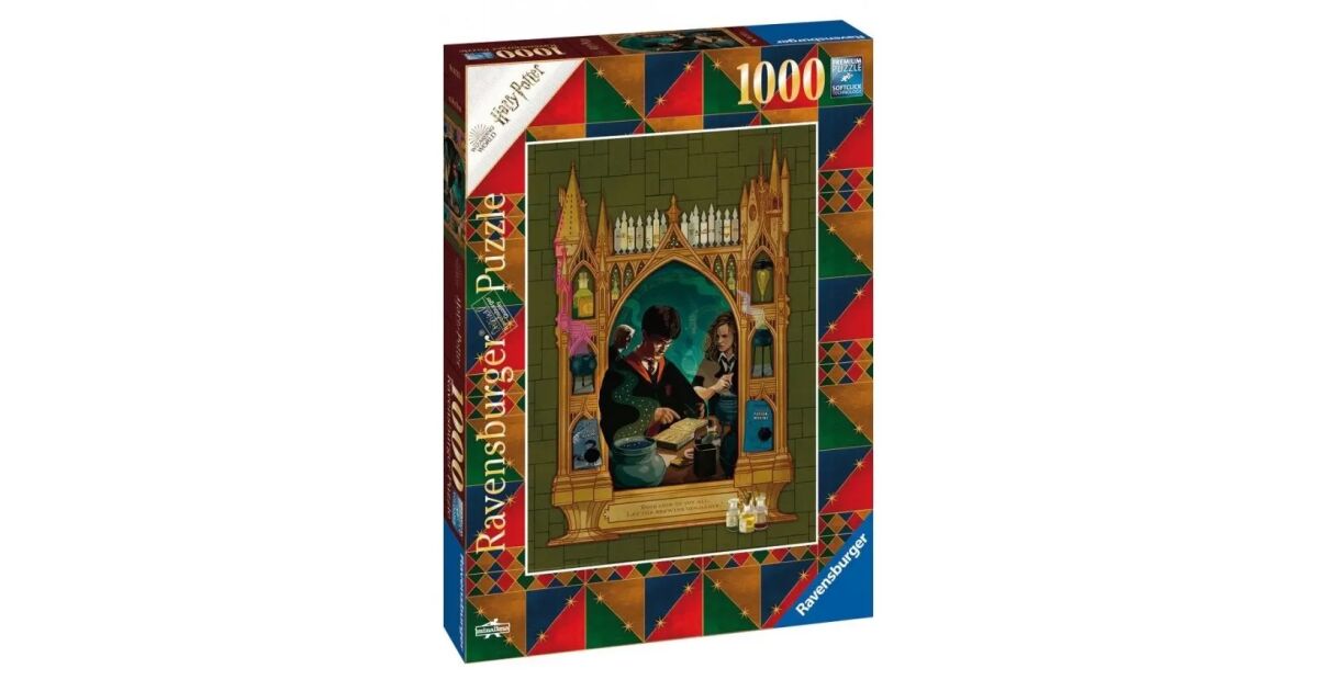 Tauche ein in die magische Welt mit diesem 1000-teiligen Ravensburger Puzzle, inspiriert von Harry Potter und der Halbblutprinz. Das detailreiche Bild zeigt Harry und Hermine beim Zaubertrankbrauen in einer faszinierenden Hogwarts-Umgebung.