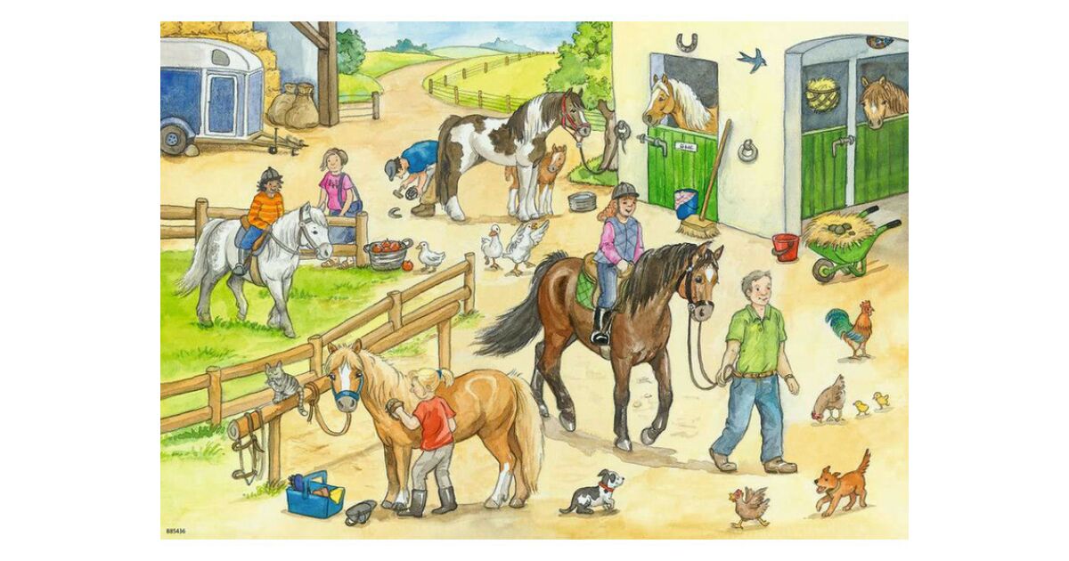 Dieses 2x24-teilige Ravensburger Puzzle ist die perfekte Wahl für kleine Pferdefreunde und Tierliebhaber ab 4 Jahren! Es bietet zwei separate, spannende Puzzlebilder, sodass doppelter Spaß garantiert ist. Die wunderschön illustrierten Pferdehof-Bilder sorgen für eine fröhliche Stimmung und fördern die Feinmotorik, die Problemlösungsfähigkeiten und das bildliche Denken des Kindes.