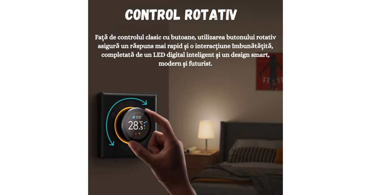 Genießen Sie modernen Komfort und sparen Sie Energie mit diesem intelligenten Thermostat! Das Gerät mit Drehknopf und farbigem Umgebungslichtring ist einfach zu bedienen und eine stylische Ergänzung für Ihr Zuhause. Über die Tuya App ist es auch per Smartphone steuerbar und mit Alexa und Google Home kompatibel.