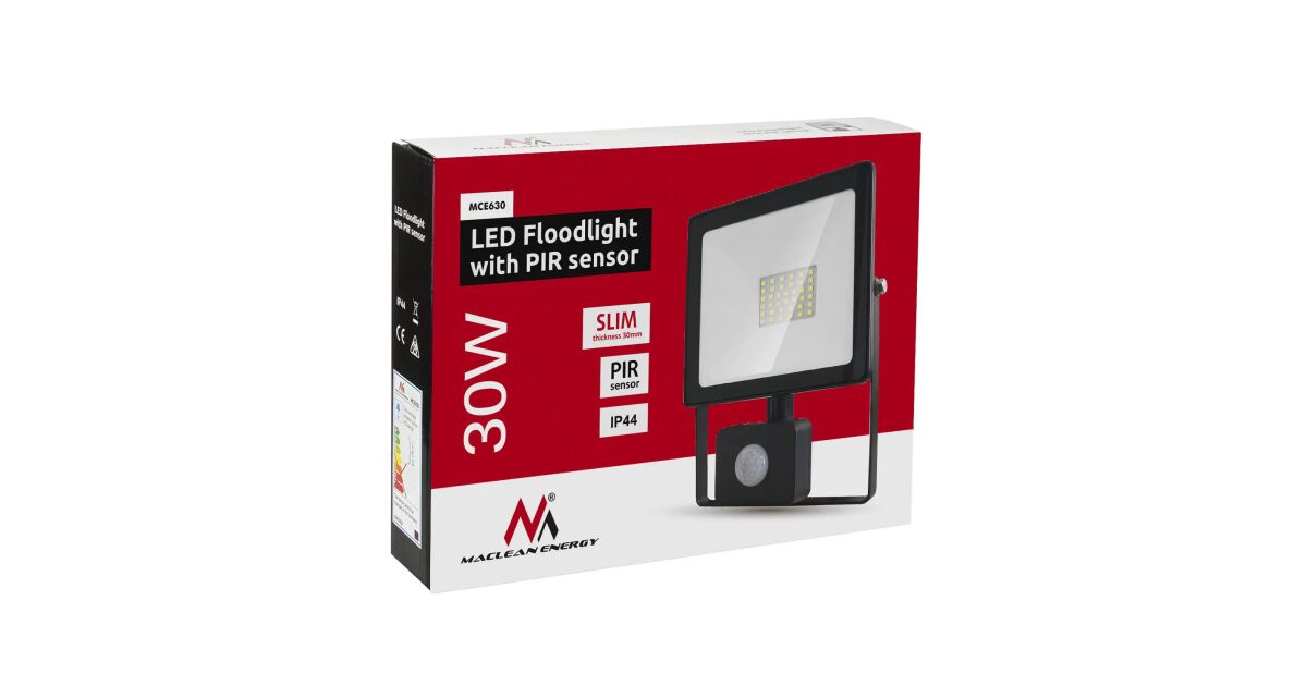 Maclean Floodlight LED-Flutlicht mit Bewegungssensor Maclean MCE630 CW Slim Kaltweiß 30W, IP44
