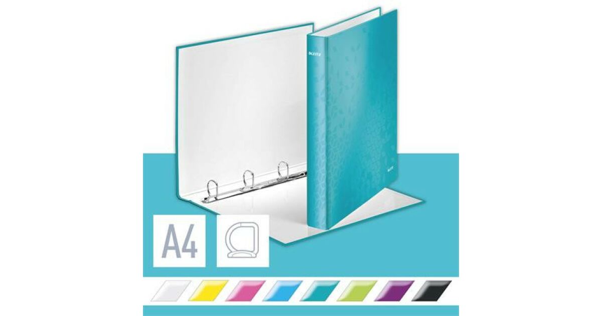 LEITZ "Wow" A4 Maxi 40 mm glänzend lackiert D-Form 4 Ringbücher eisblau Beschreibung
