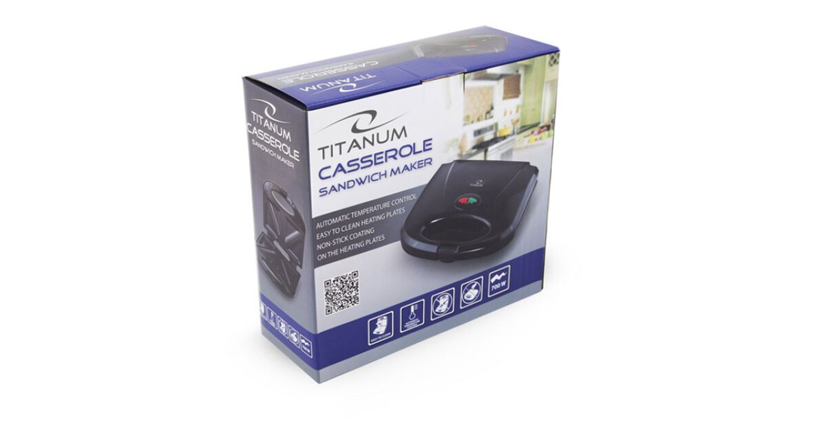 Esperanza Titanum TKT002K, Auflaufform, 700 W, 4 Scheiben, Antihaftbeschichtung, Schwarz, Sandwichmaker Beschreibung