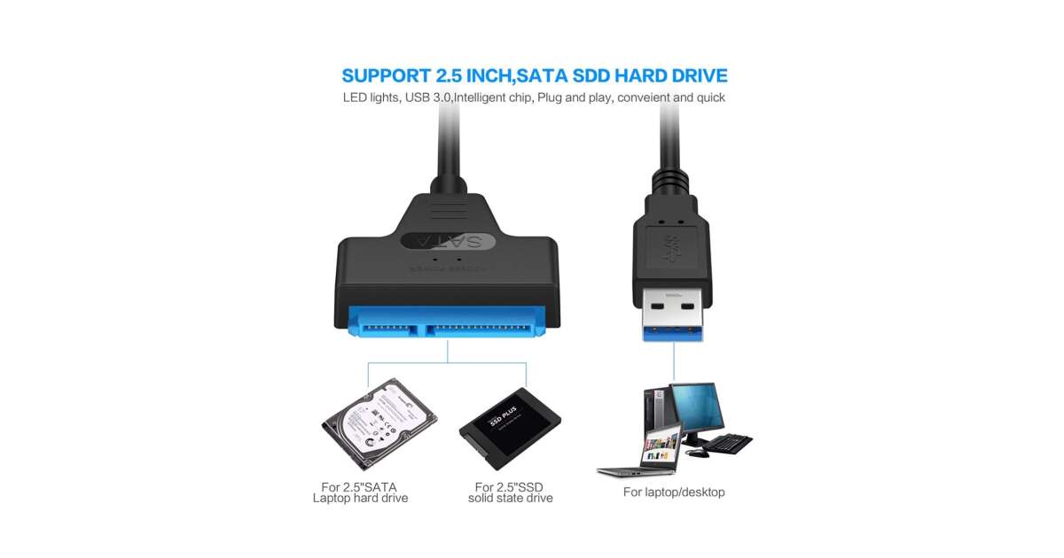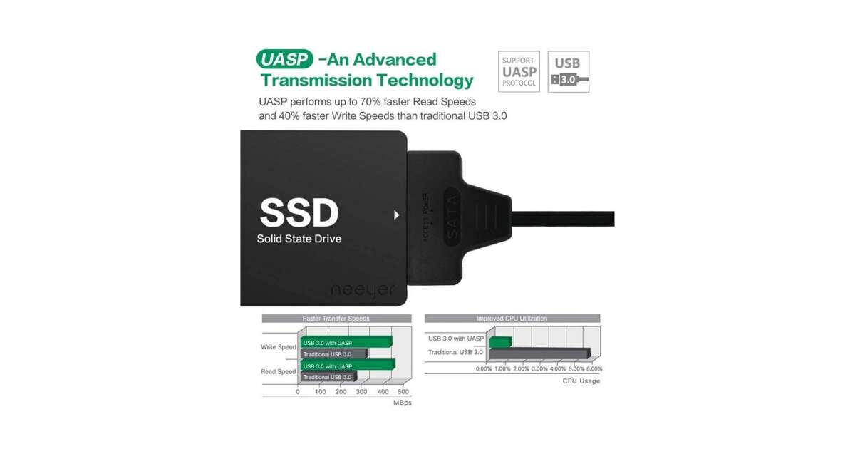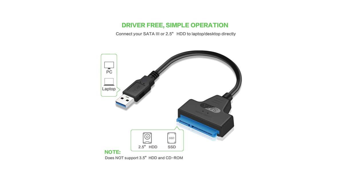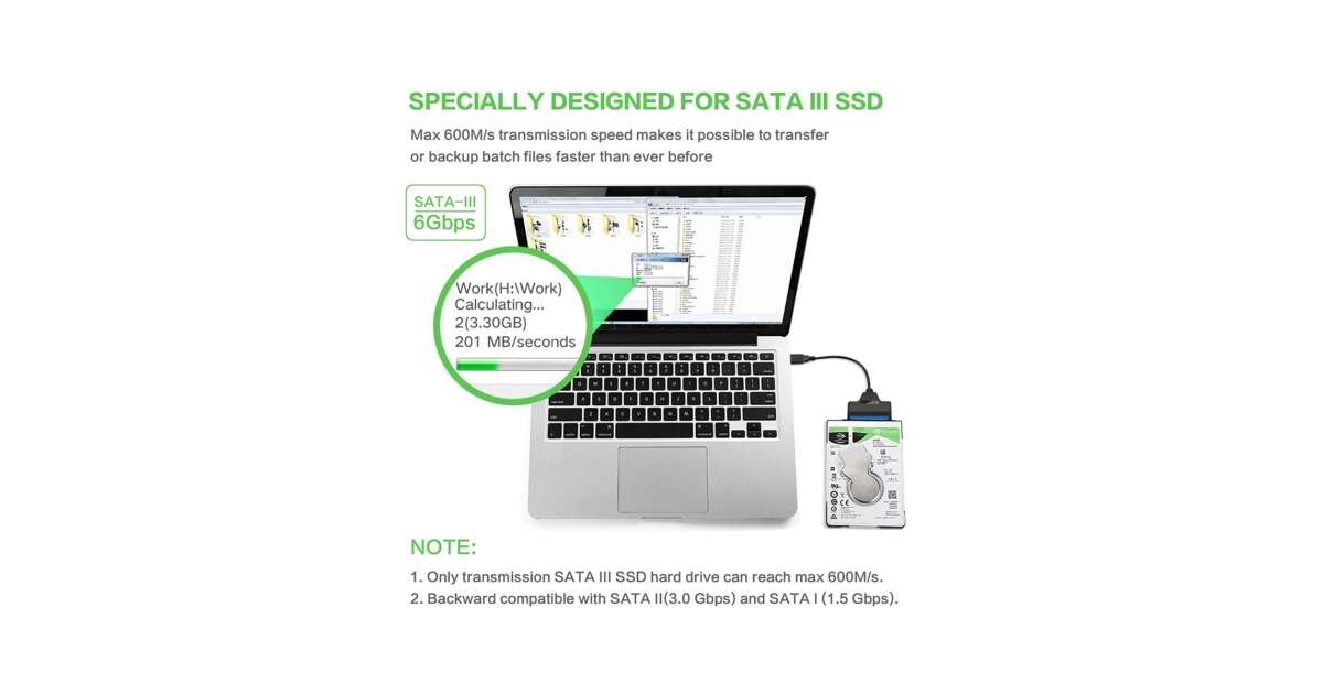 USB-Kabel mit SATA 3-Adapter, Ugreen, Datenübertragung von SATA 3 auf USB 3 für HDD 2.5 oder SSD 2.5, Geschwindigkeit 6 Gbit/s UASP, schwarz Beschreibung