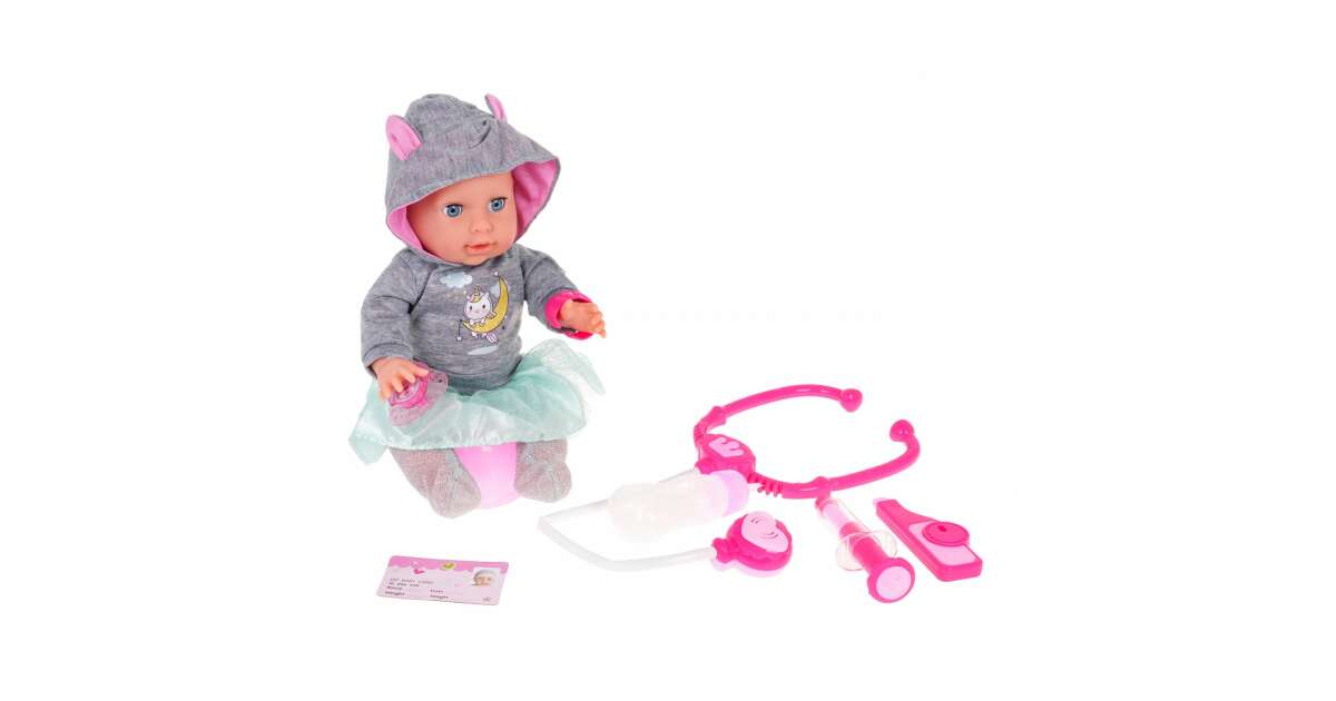 Interaktive Puppe Marysia + Zubehör für den Arzt für Kinder +3 bewegliche Elemente + Geräusche + Fiebereffekt Beschreibung